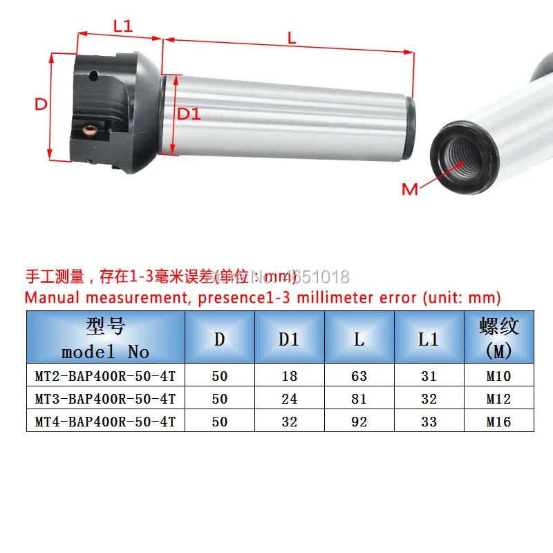 Информация о продукте: Название: Интегрированная ручная мельница Морзе Модель: MT2-BAP400R-50mm / MT3-BAP400R-50mm / MT4-BAP400R-50mm/63 мм Применимое лезвие: APMT1604 Посылка программного обеспечения включает в себя: 1 плоский Фрезер с ручкой Морзе 1 маленький ключ Примечание: Этот продукт не включает таможенные пошлины