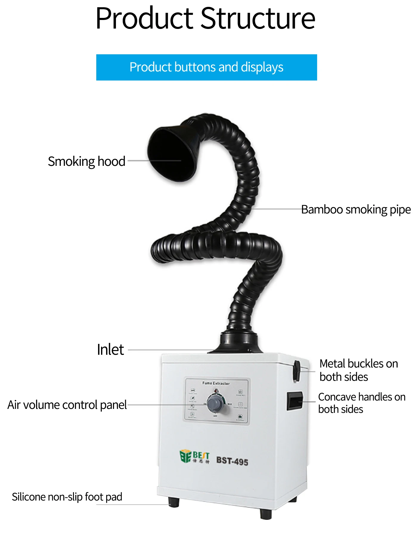 Сварочный припой очищение от дыма оборудование мобильный Внутренний воздушный фильтр с активированным углем очиститель дыма BST-495