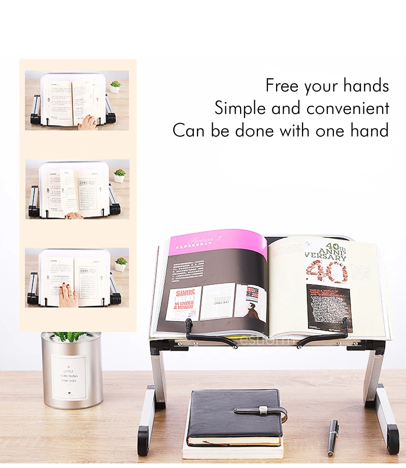 Регулируемая подставка для книг, регулируемая высота и угол, эргономичный держатель для книг с бумажными зажимами для больших тяжелых учебников, музыкальных книг, планшетов, поваров, рецептов, прочный легкий алюминиевый держатель для книг