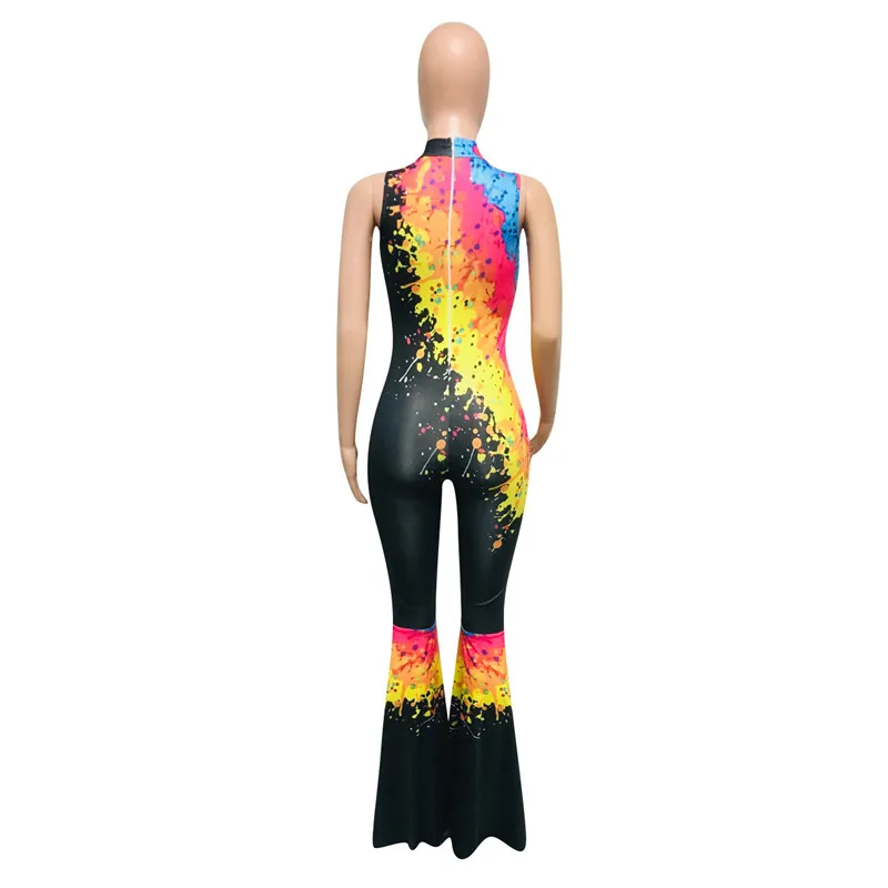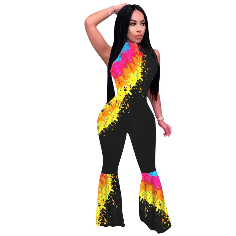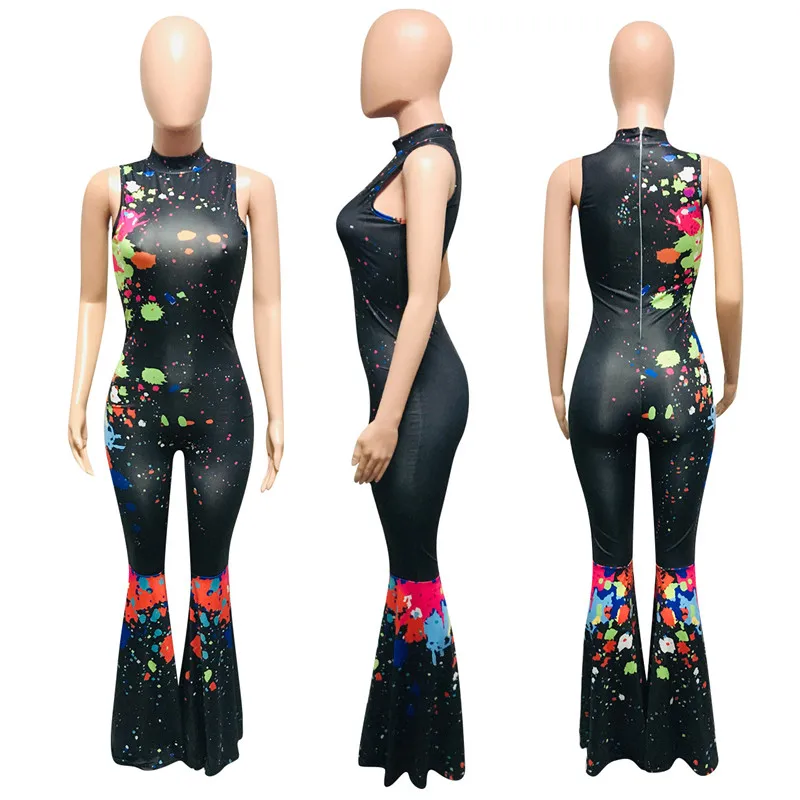 Женский комбинезон без рукавов Adogirl, комбинезон с принтом живописи и ложным воротником, модные привлекательные штаны с расклешенным низом, комбинезон с расклешенными штанинами, S-XXL