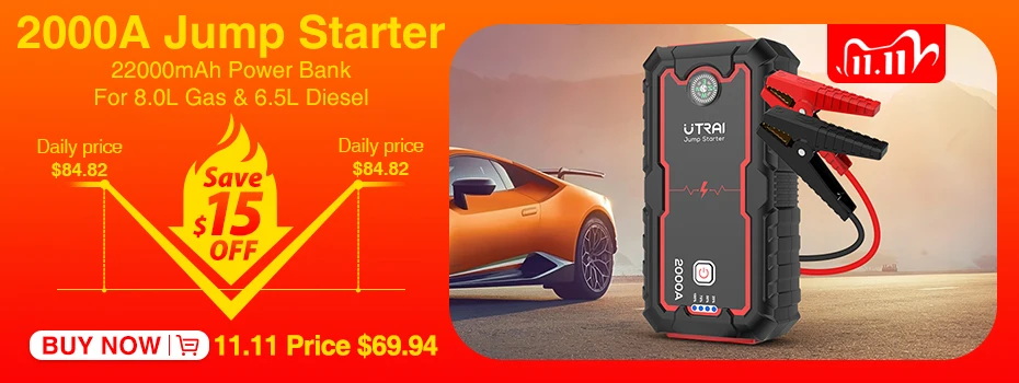 Емкость аккумулятора: 24000 мАч Пиковый ток: 2000A Пусковая мощность: 12 В DC Выход: 12V-16V/10A Вход типа C: 5 В/3A, 9 В/2A, 12 В/1.5A USB1 Выход: 5 В/3A, 9 В/2A, 12 В/1.5A Выход USB2: 5 В/2,1 А Рейтинг газового двигателя: до 8.0L Номинальная мощность дизельного двигателя: до 6,5л Рабочая температура:-20 ℃ ~ + 75 ℃ Светодиодный светильник белого цвета: 5 Вт Время зарядки быстрой зарядки: 4h-4,5 h Единый Размер (Д * Ш * В) :201 мм * 153,5 мм * 77 мм Воздушный компрессор насос: максимальное давление воздуха 150psi Эффективность преобразования: >85%