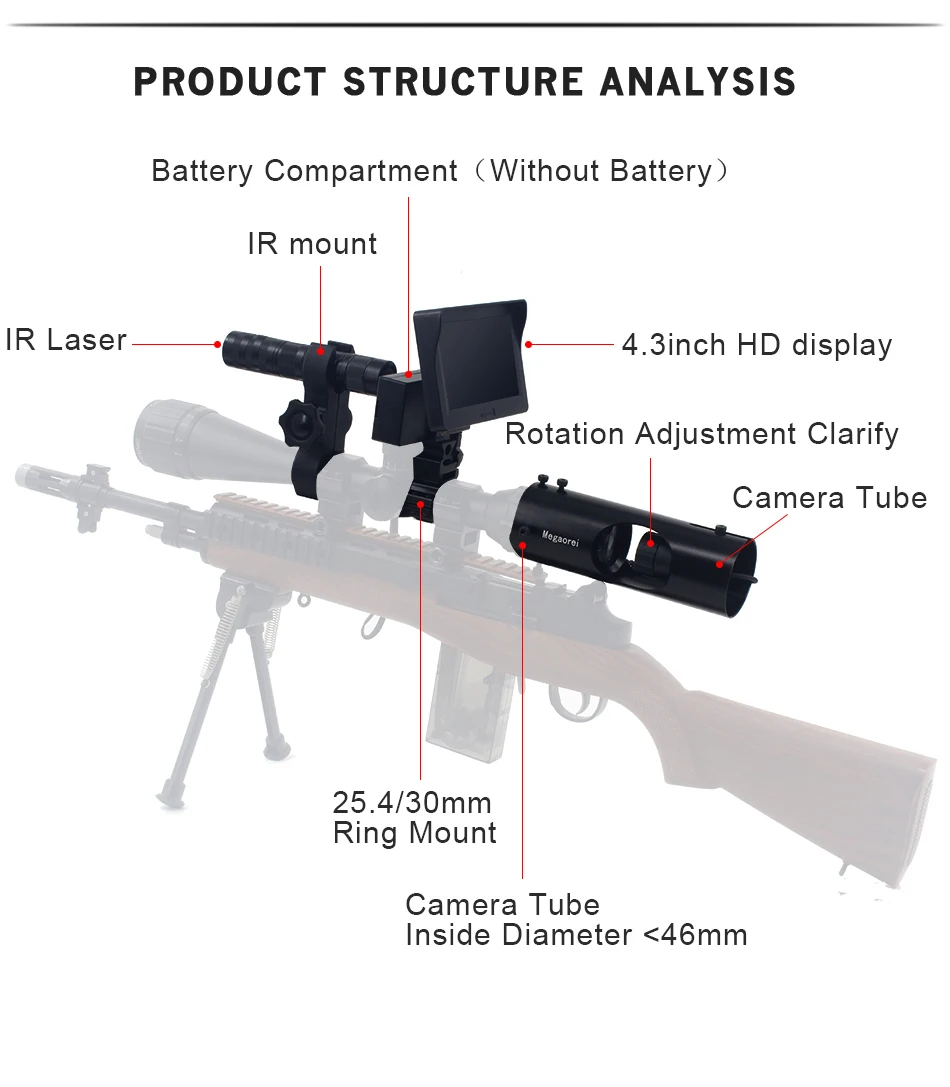 4,3 дюймов 720p HD ЖК-дисплей ночное видение обзорная область видео объектив для винтовки ИК лазерный фонарь Крепление охотничий телескоп 300 м бинокль
