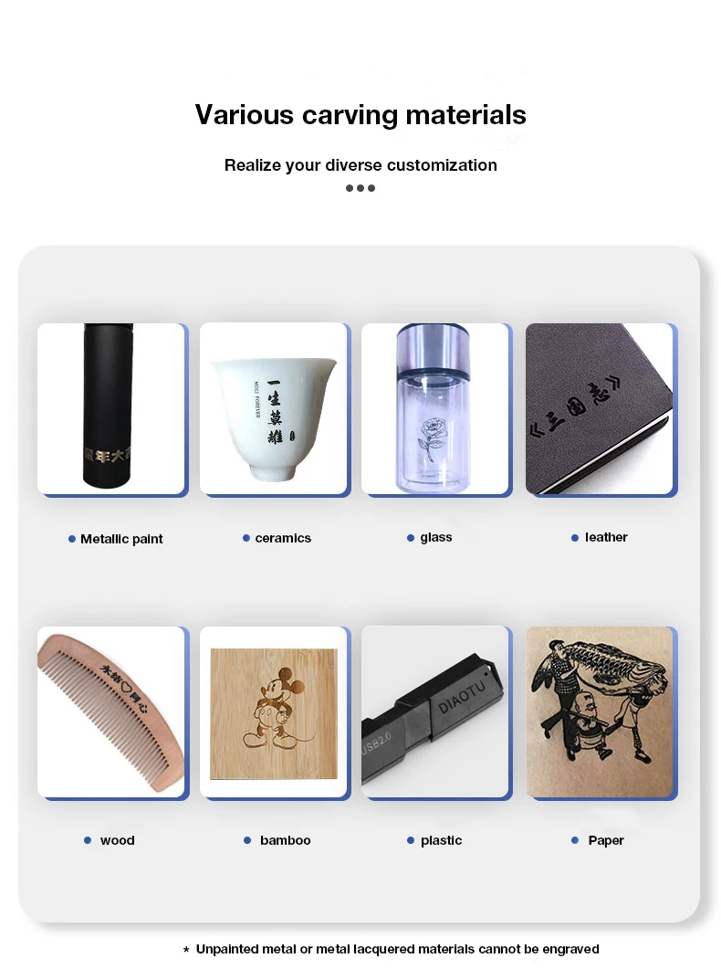 3. Он не может гравировать металл, стекло, кристалл и любой другой прозрачный материал.