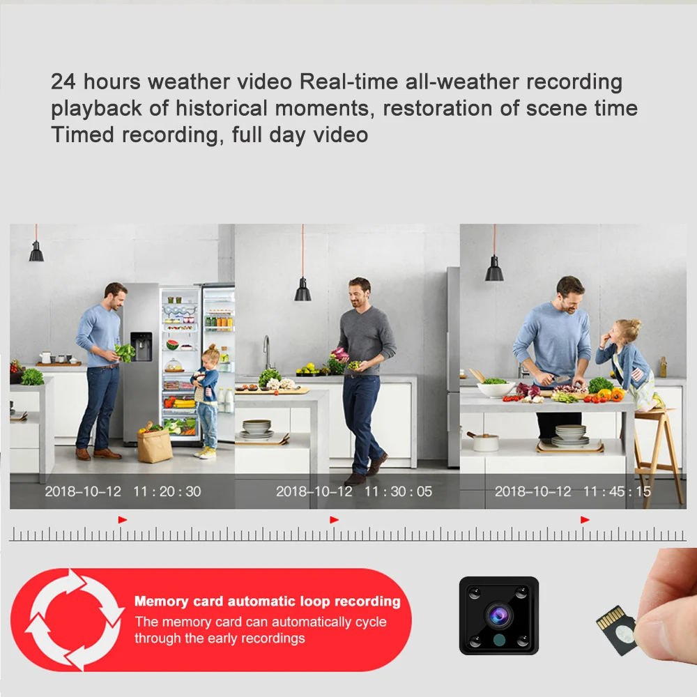 Мини-камера Full HD 720P/1080P: HD изображение, позволяющее легко смотреть четкие детали в записи.