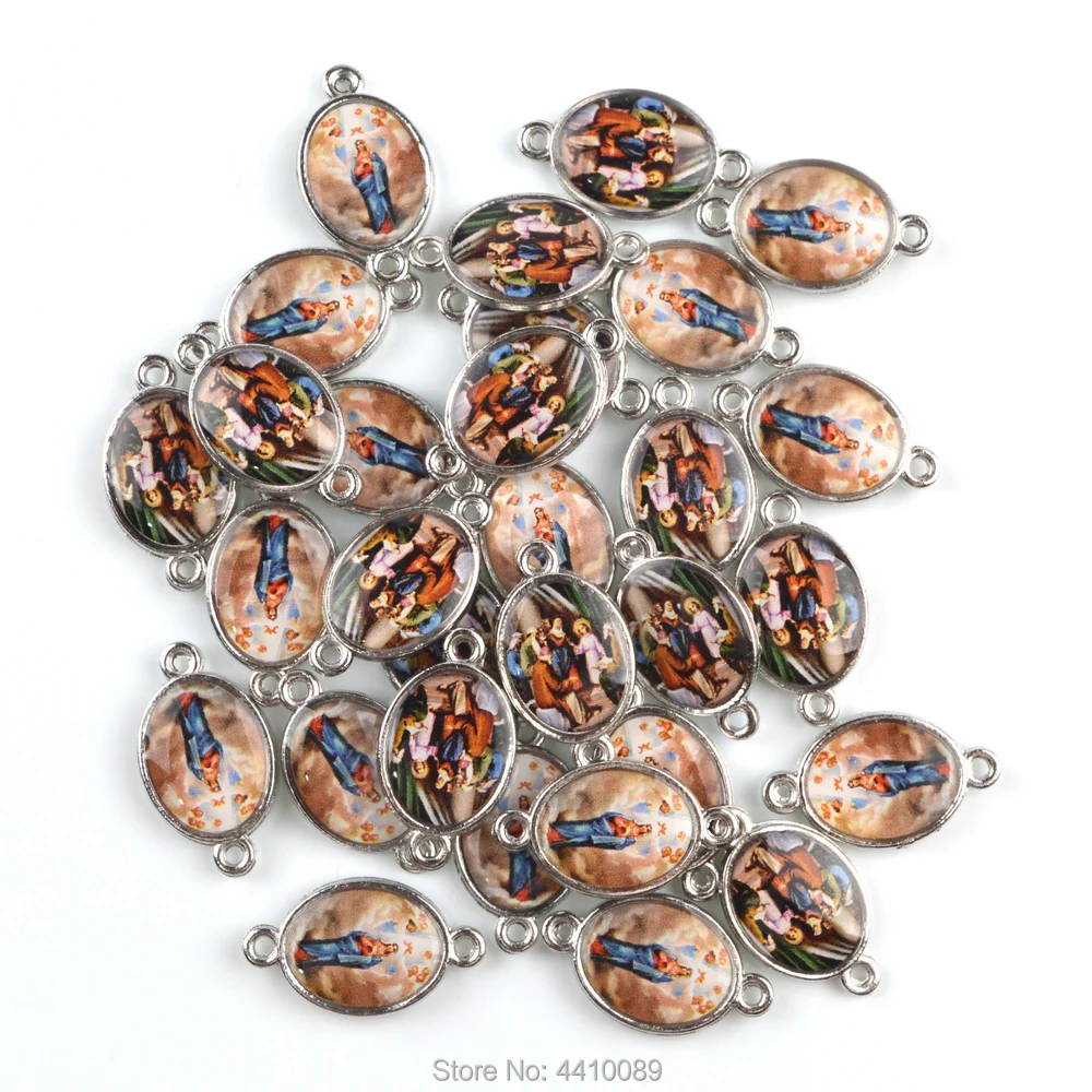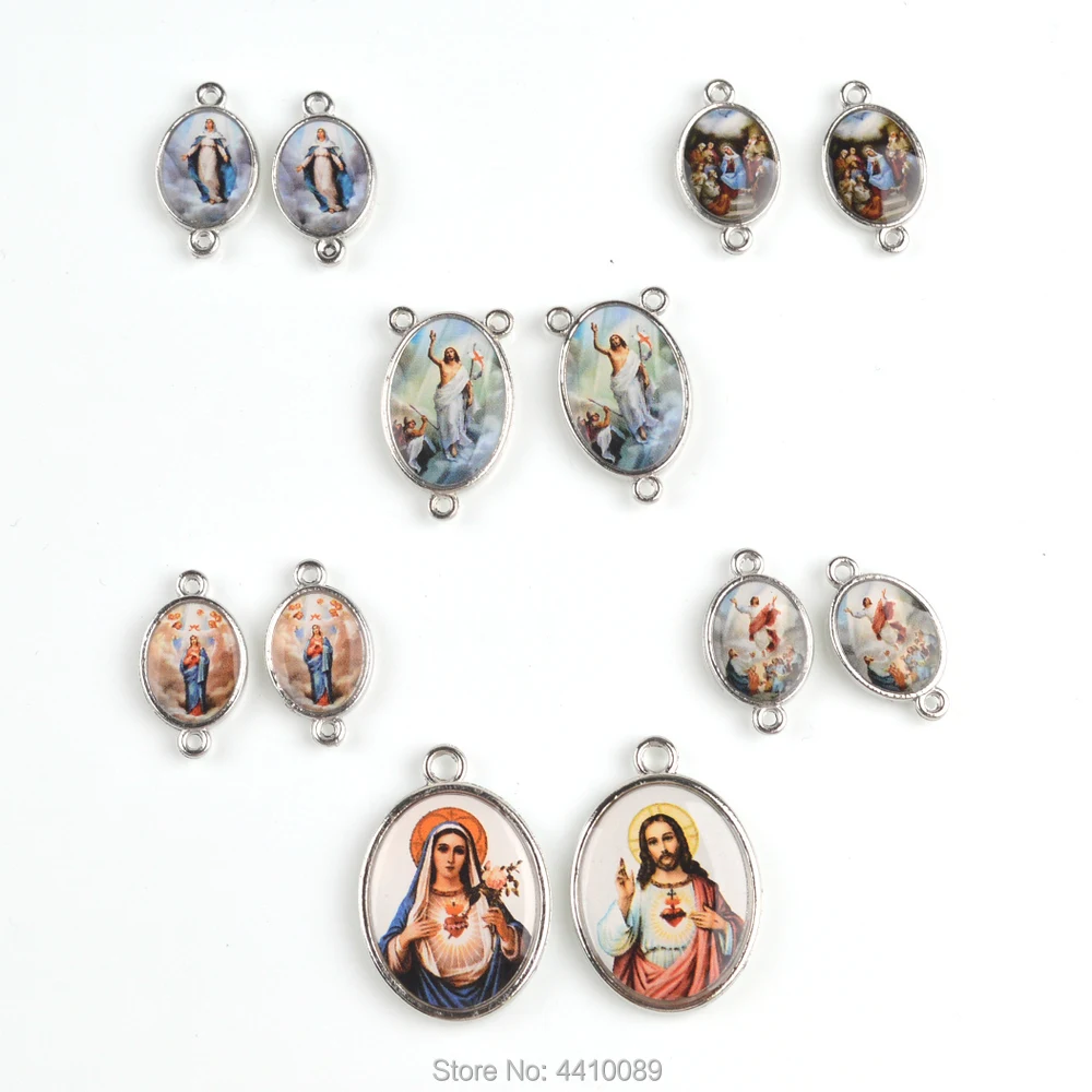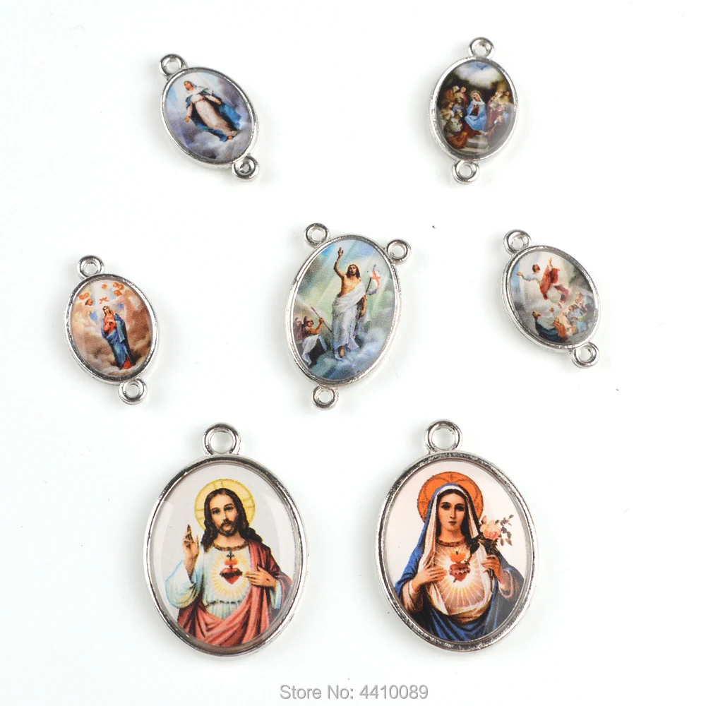 1 набор включает 1 кулон, 1 центральный элемент и 4 разъема 6 различных загадок аксессуары для Розария A) радостные и славные тайны B) печальные и светящиеся тайны C) радостные тайны D) славные тайны E) печальные тайны F) светящиеся тайны Размер подвески: 29*20 мм Размер центра: 24*14 мм Размер разъема; 20*12 мм