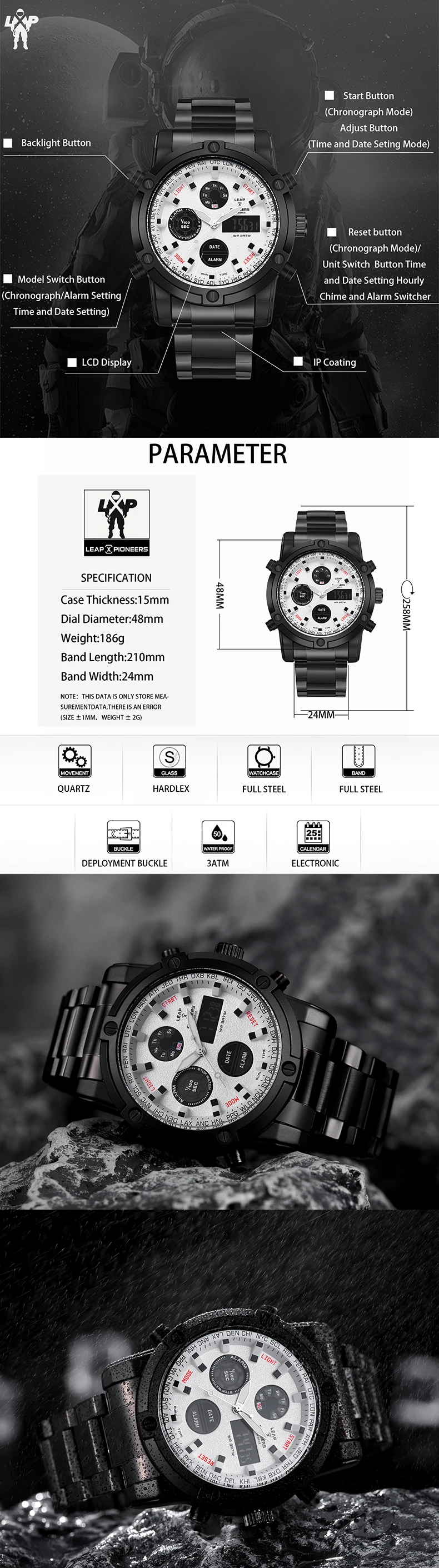 LEAPXPIONEERS часы для мужчин военные Relogio Masculino Мужские кварцевые наручные часы из нержавеющей стали ремень водонепроницаемый