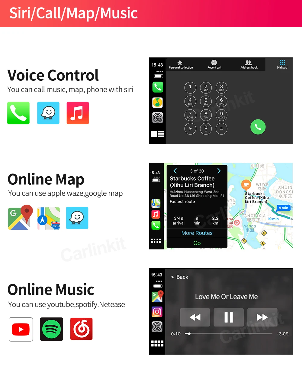 1) беспроводная Apple CarPlay2) Беспроводная Android авто (небольшая часть) 3) iOS AirPlay / Mirror-Link 4) Задняя камера (с обратной дорожкой) 5) udisk play-ниже 128 г (музыка, видео) 6) Оригинальная работа на руле, управление ручкой, управление голосом 7) камера заднего вида (с обратной дорожкой) 8) вход HDMI-in HD