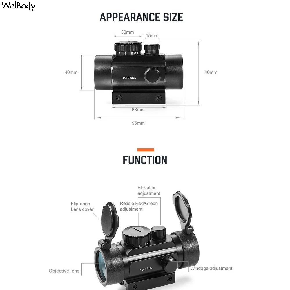 Тактический 1X40RDL красный зеленый горошек тактический прицел оптический коллиматорный охотничий прицел с 11/20 мм ласточкин хвост для охотничьих винтовок наружного воздуха пистолет