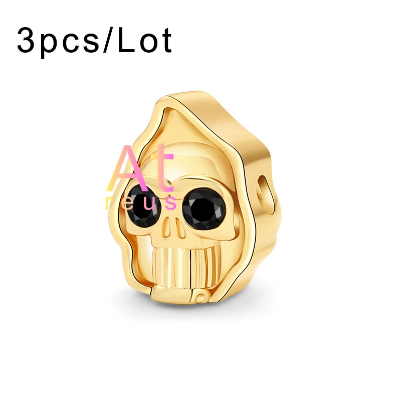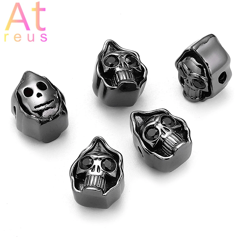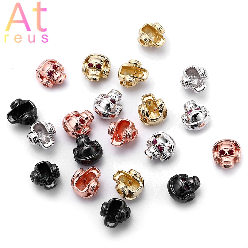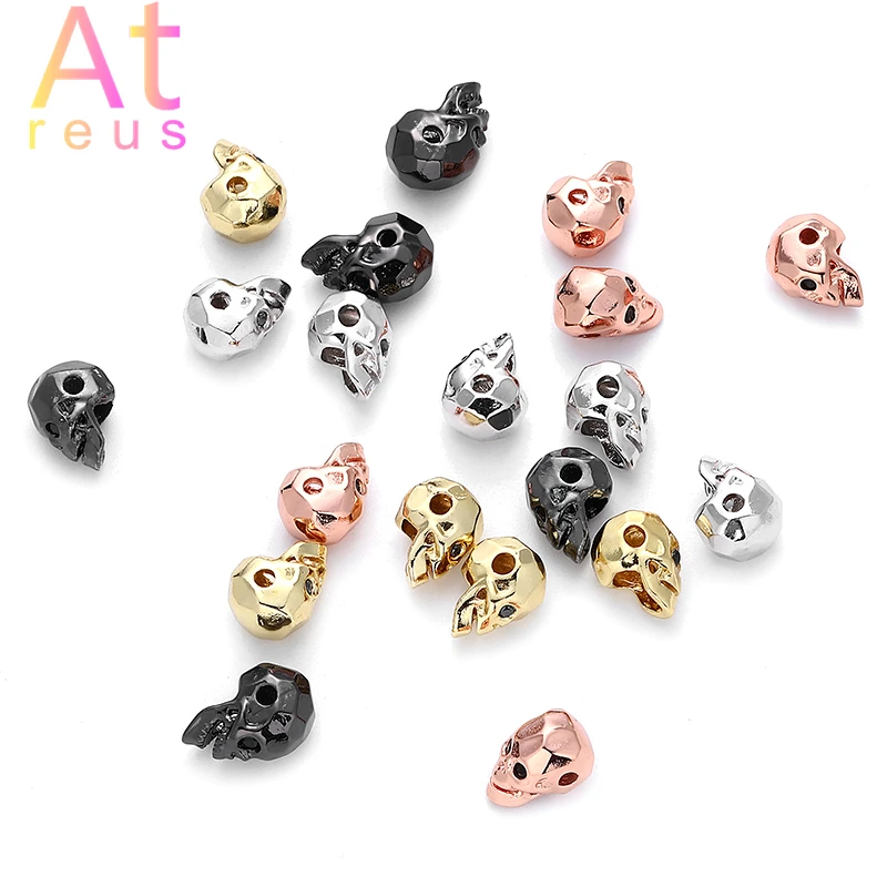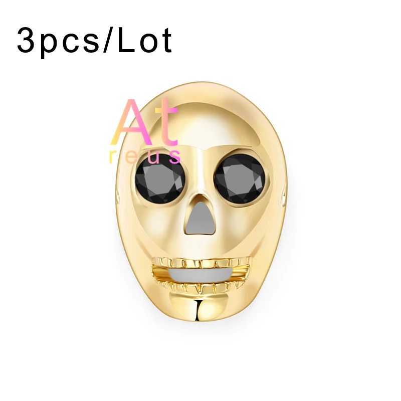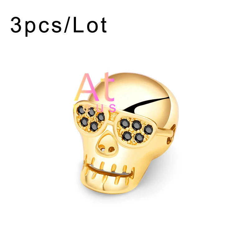 3 шт. гладкие граненые бусины с головой черепа для самостоятельного изготовления браслетов, ювелирных изделий, микро проложить медный глаз с фианитами, шарм, скелет, клоун, жнец