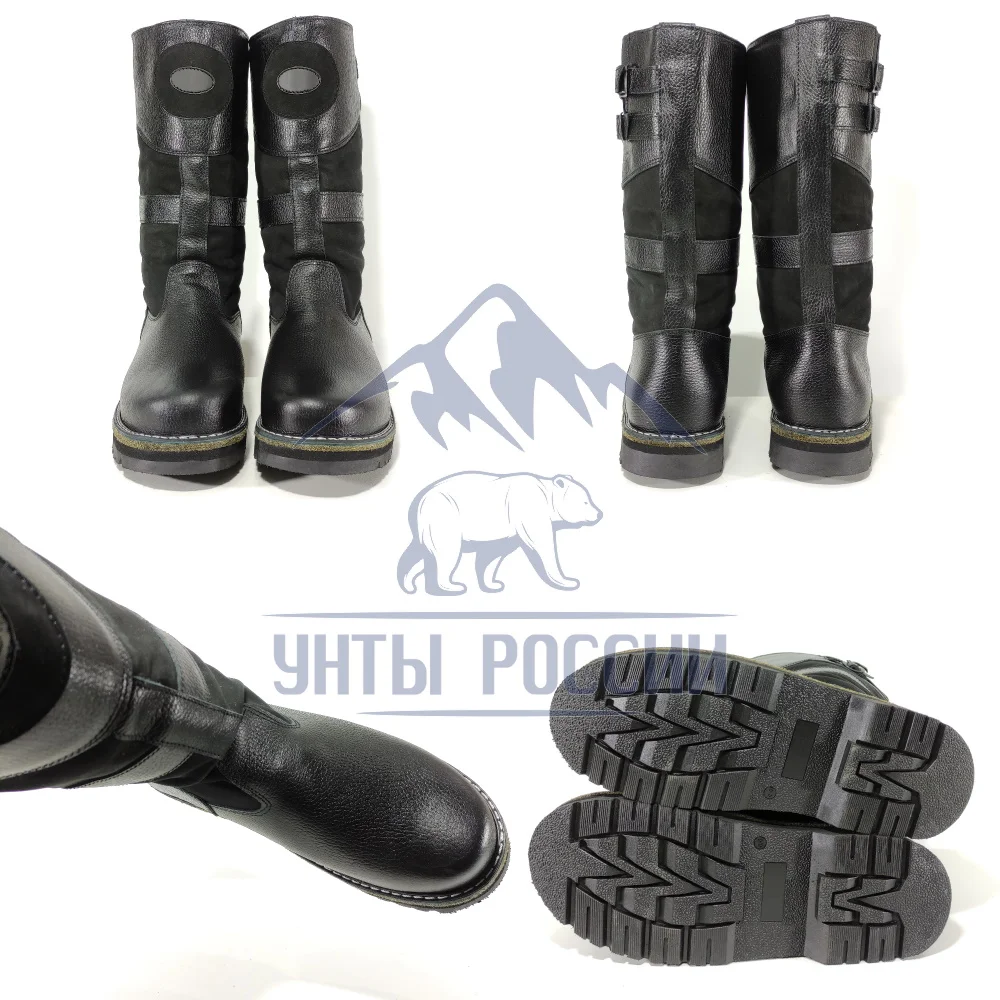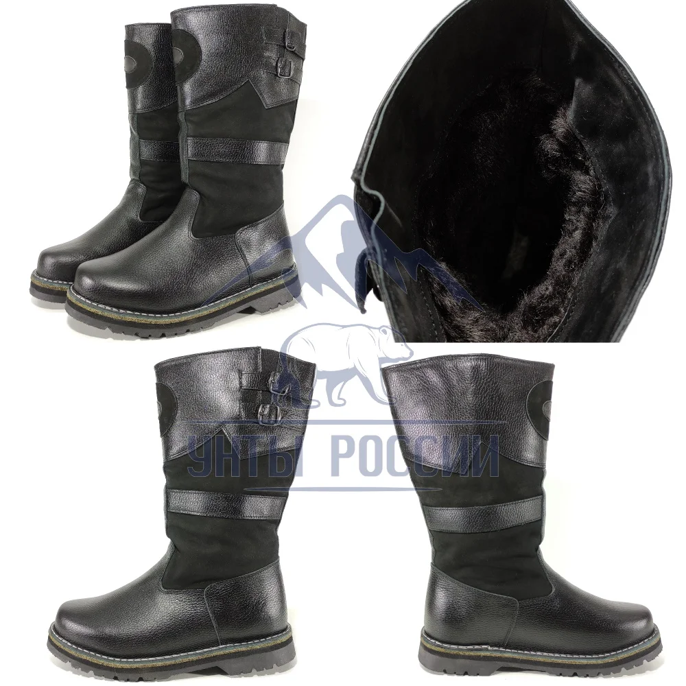 2. Монголки мужские натуральные высокие черные, войлочнорезиновая подошва, код 40132, "Унты России"