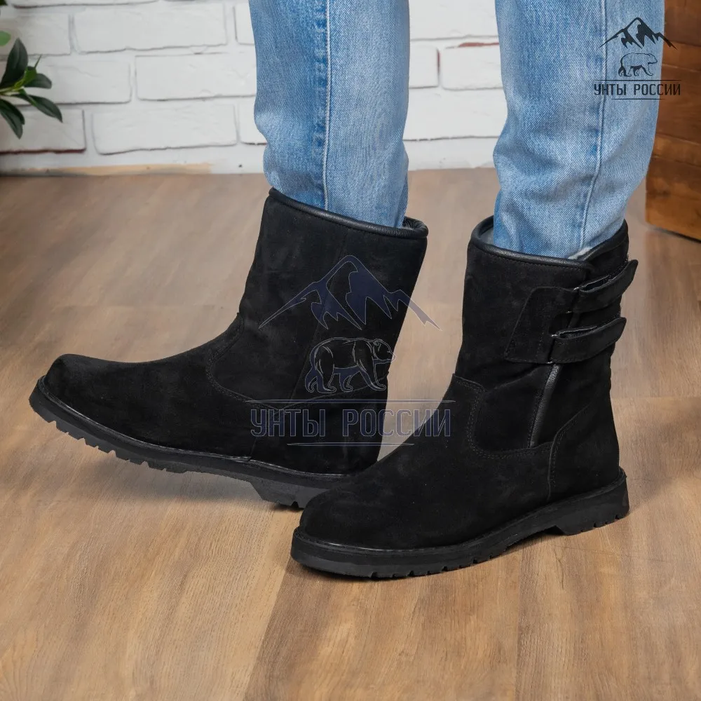 Сапоги мужские натуральные черные замшевые на липучках, "Унты России"