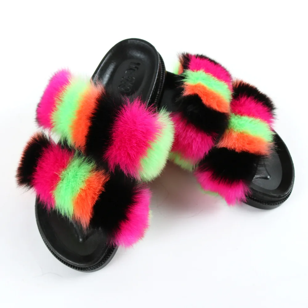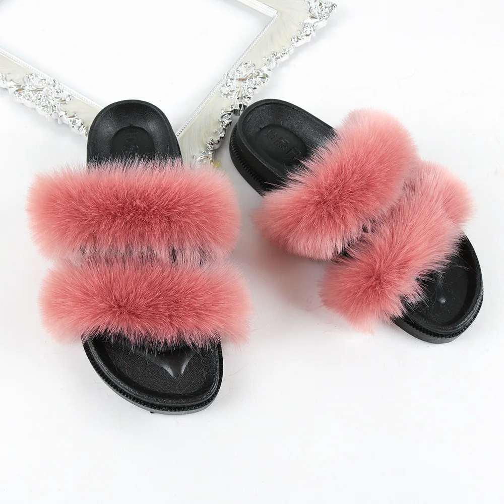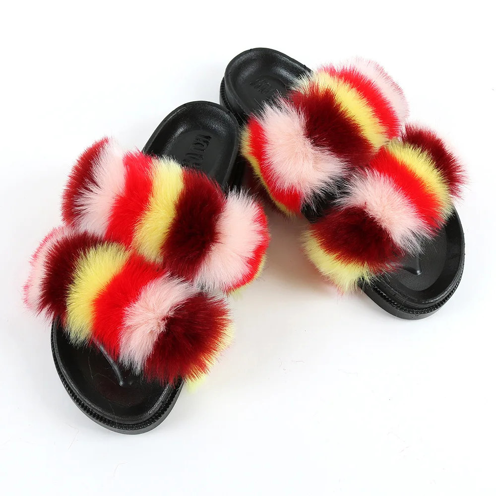 Модные тапочки из искусственного меха; Меховые шлепанцы с лисьим мехом; Женские пушистые сандалии с искусственным мехом лисы; Уличные Нескользящие шлепанцы; Женская обувь радужной расцветки