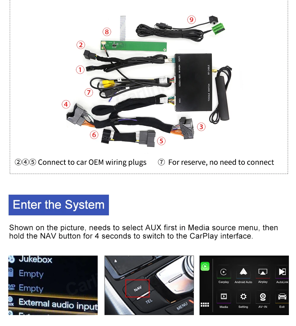 2. Работает с проводным CarPlay также, сначала выключите Wi-Fi, подключите через кабель освещения (проводное Удерживайте телефон одновременно)