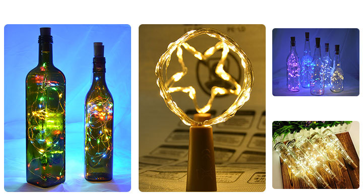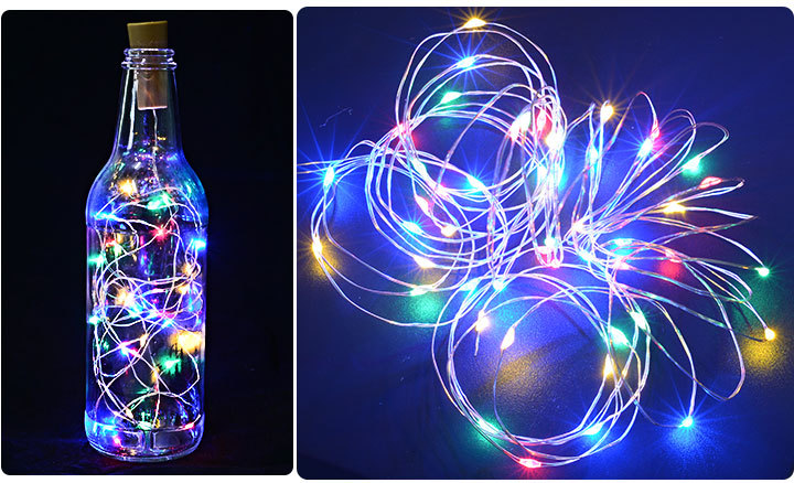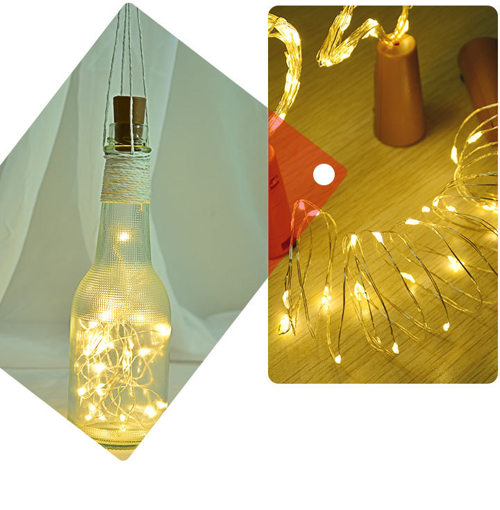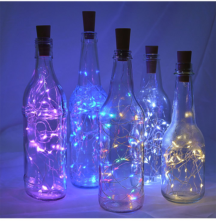 Гибкая медная проволока 200 см 100 см, 20 светодиодов 10 светодиодов, заряжаемых в форме пробки, обеспечивают равномерное распределение между бутылками.