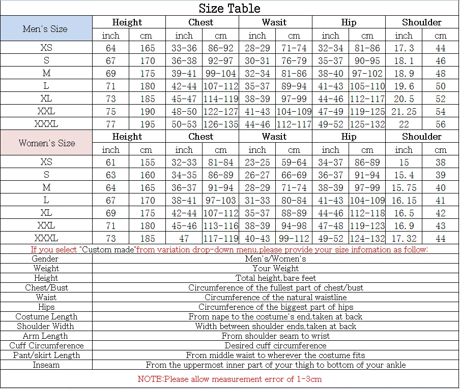 Таблица размеров