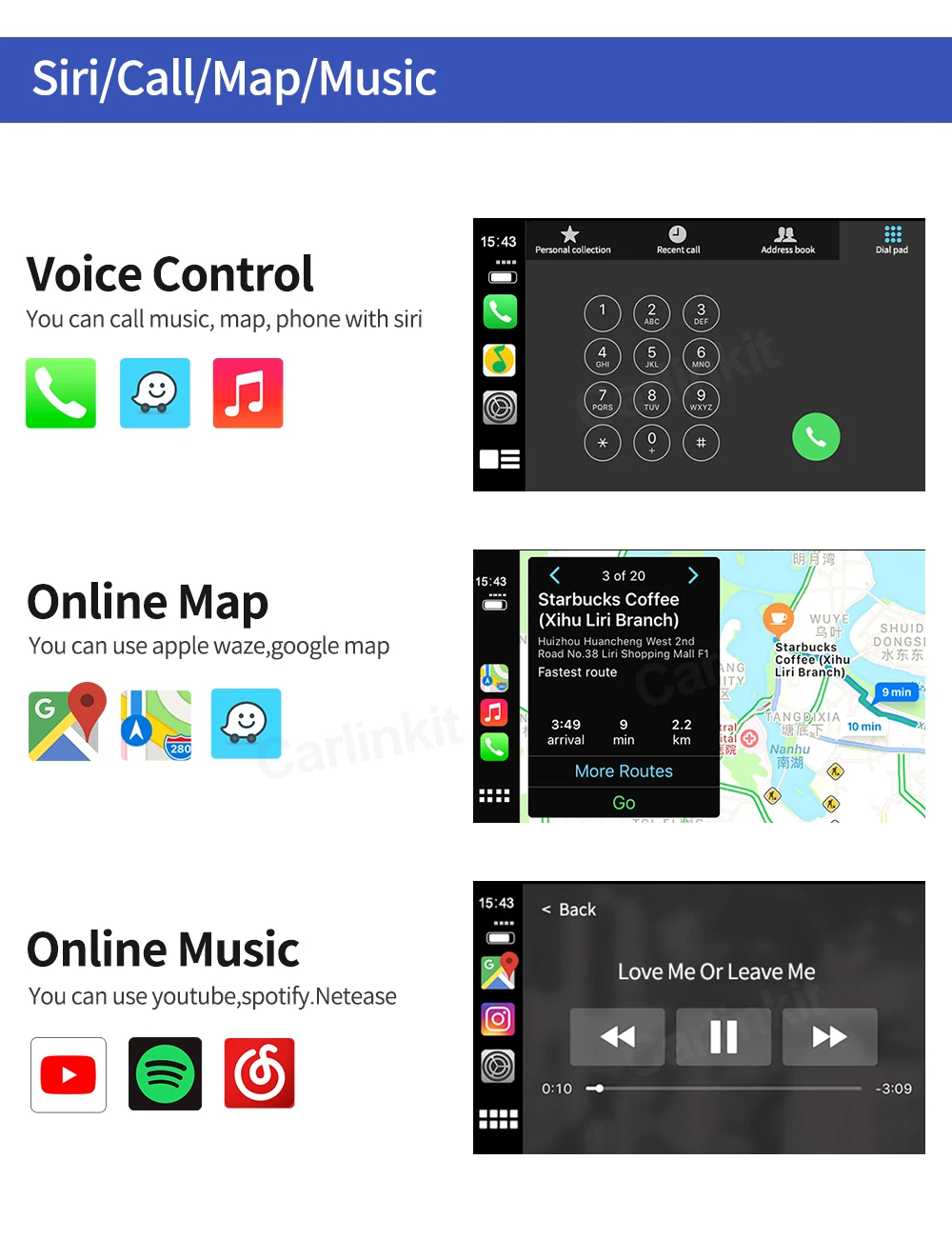 2. Работает с проводным CarPlay также, сначала выключите Wi-Fi, подключите через кабель освещения (проводное Удерживайте телефон одновременно)