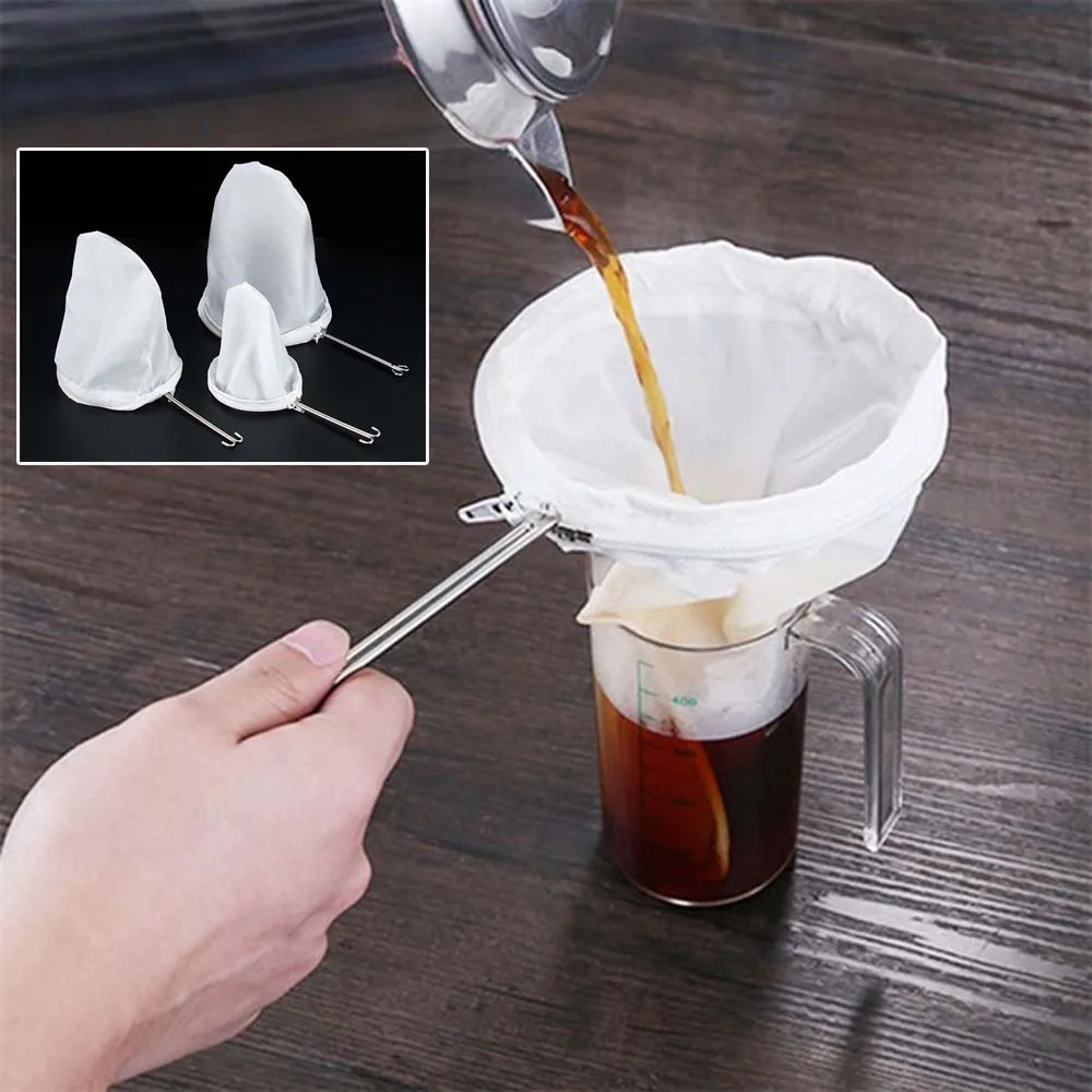 Тип: мешки для фильтров Материал: ручка из нержавеющей стали + хлопковая ткань Цвет: белый, серебристый Характеристика: с ручкой Размер: S/M/L (как показано на рисунке) Посылка включает в себя: 1/3 шт фильтр мешки с ручкой
