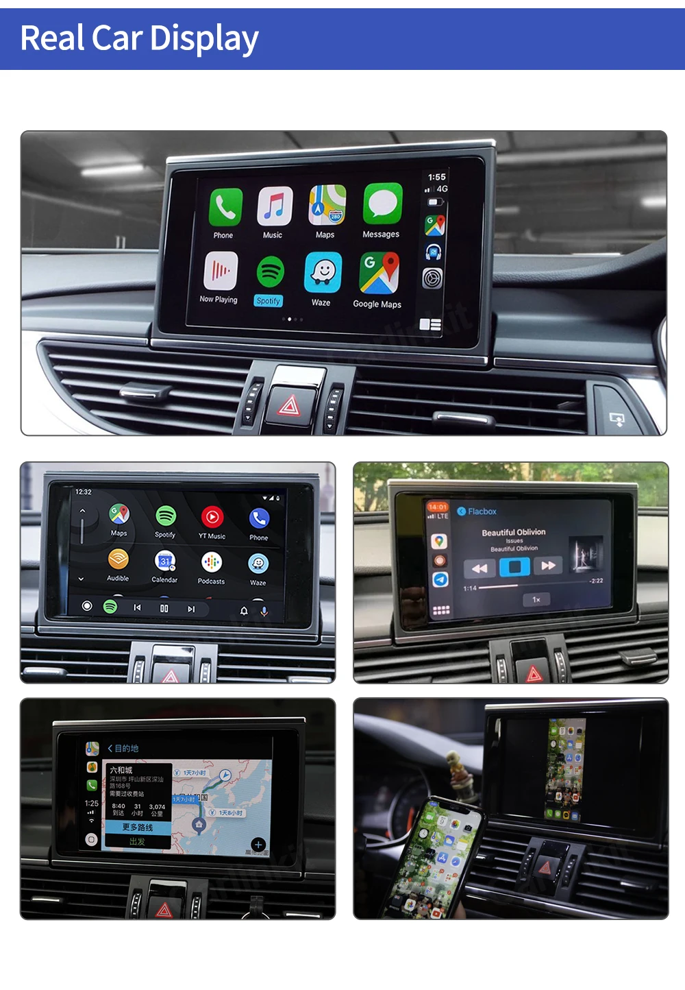 5. Музыка яблоки Spotify, Apple Music, Amazon и т. д. аудио через фабрику Audi media, текст на дисплее для некоторых приложений.