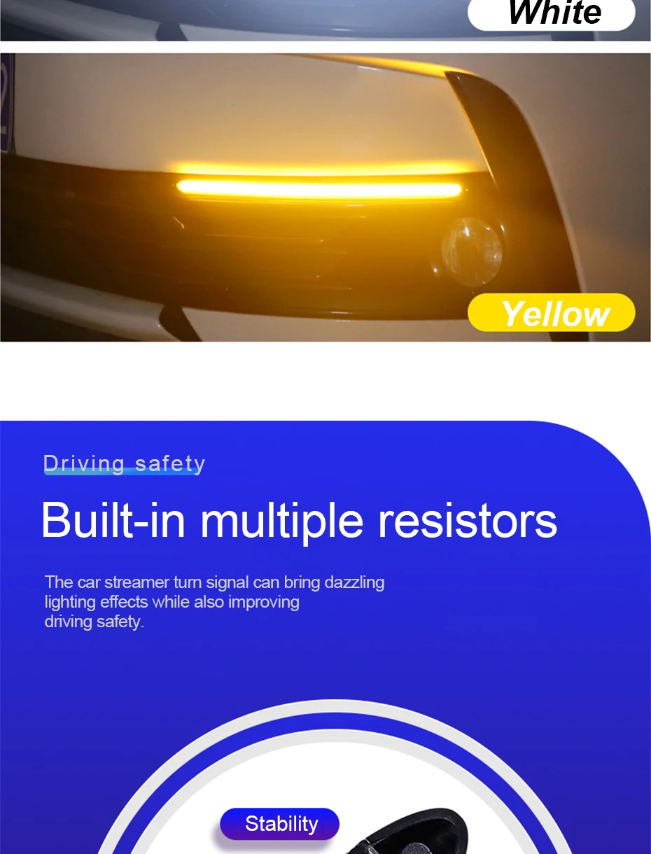 1. Белый светильник: супер яркий дневной ходовой светильник, сохраняет безопасность вождения в различной погоде.