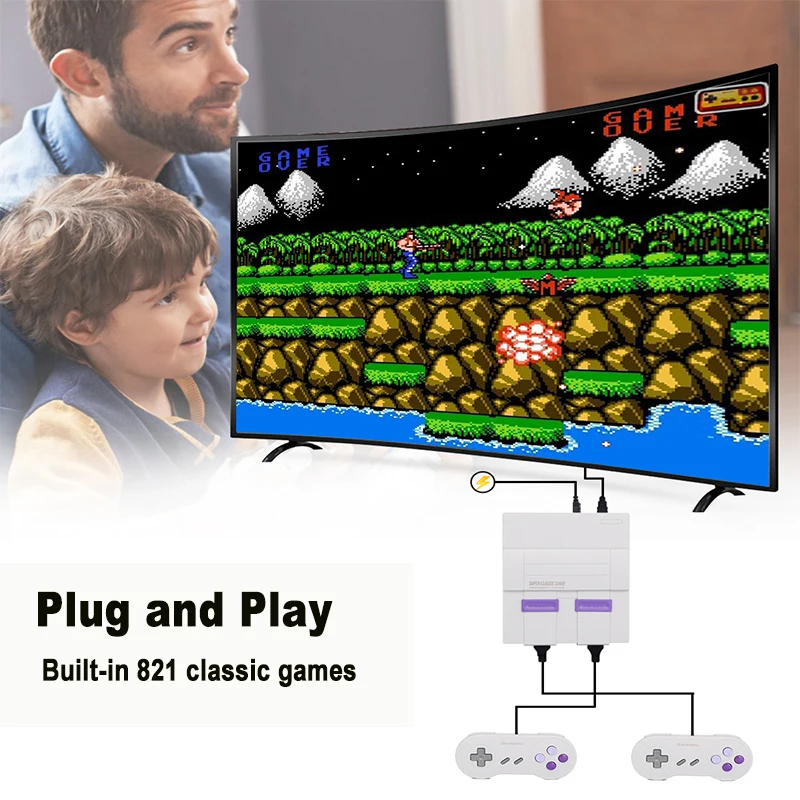 ▪8-битный Ретро Мини Видео игровой консоли ▪HD HDM-совместимый выход ▪Встроенные 821 классические игры ▪С 2 контроллерами, вы можете наслаждаться игрой с семьей и друзьями ▪Напряжение: 110-220 В ▪Совет: лучший выбор на день рождения, Рождество, День благодарения и новогодние подарки