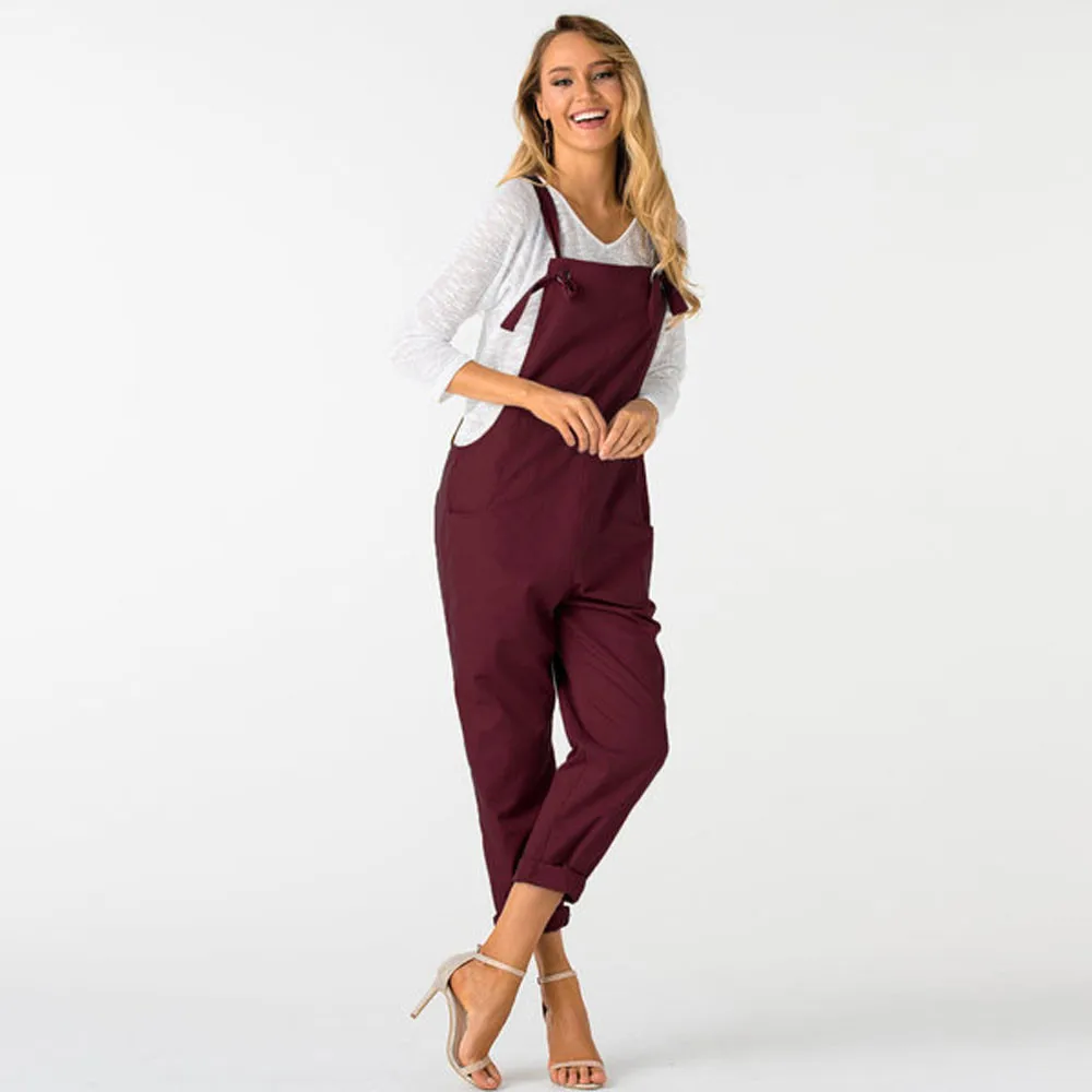 Women Loose Dungarees Loose Long Pockets Rompers Jumpsuit Pants Trousers