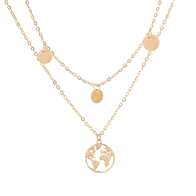 Мода золотой цвет Глобус Земля Карта мира ожерелье с подвеской простое многослойное ожерелье Wanderlust ожерелья для путешествий ювелирные изделия