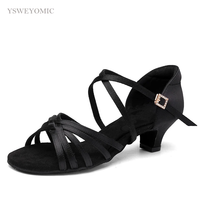 Ребенок Туфли для латинских танцев на низком каблуке 1,5 Дюймовый Атлас Сальса обувь для девочек; Танцевальная обувь; Замша подошва использовать в помещении обувь для латинских танцев