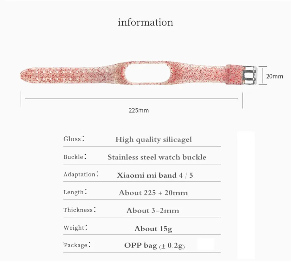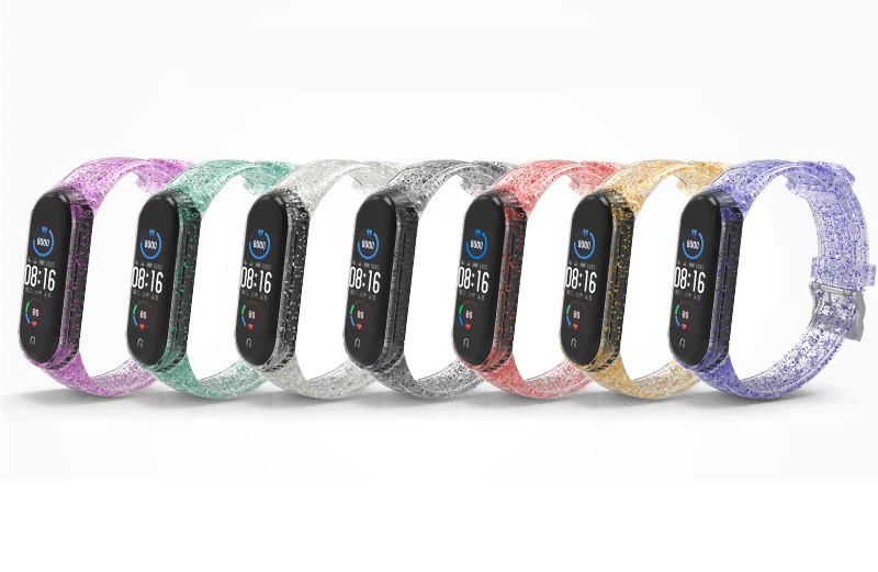 Сменный Блестящий силиконовый ремешок для Xiaomi Mi Band 5 с двойной пряжкой