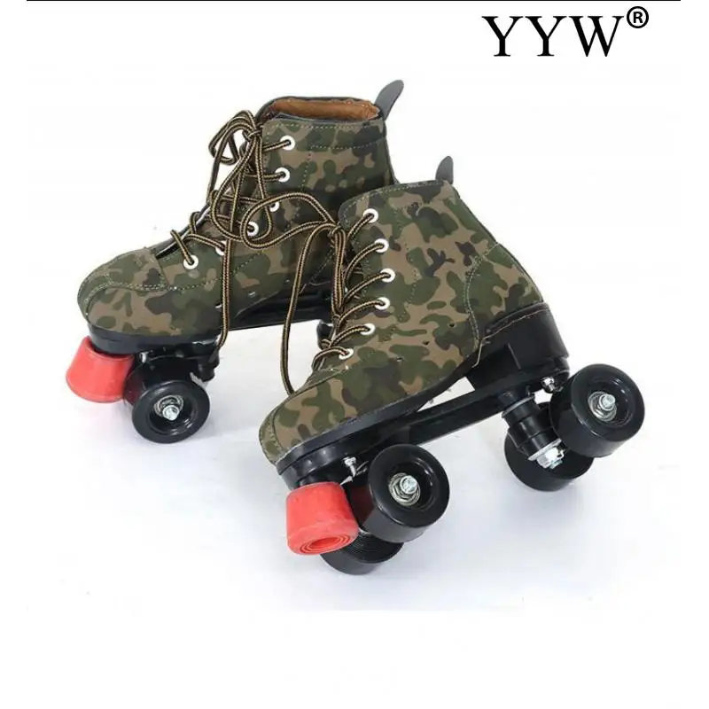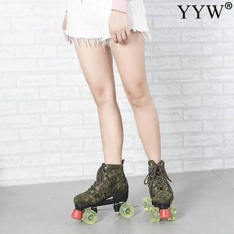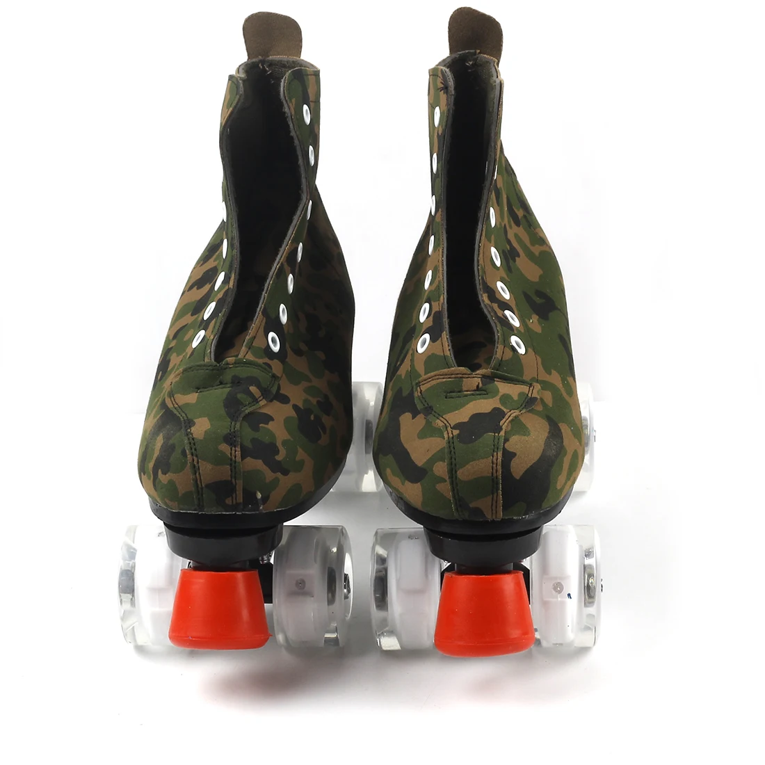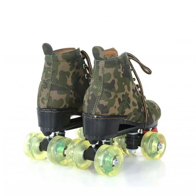 Кожаные роликовые коньки из искусственной кожи; Камуфляжные кроссовки; Флеш-ролики; Коньки для женщин и мужчин; Обувь для катания на коньках с 4 колесами