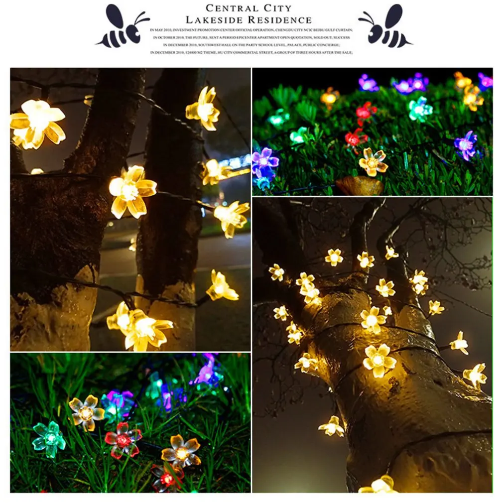 Гирлянда с цветком вишни, светодиодная гирлянда на батарейках, сказочные огни, Хрустальная гирлянда для наружного украшения рождественской елки, 9 цветов на выбор
