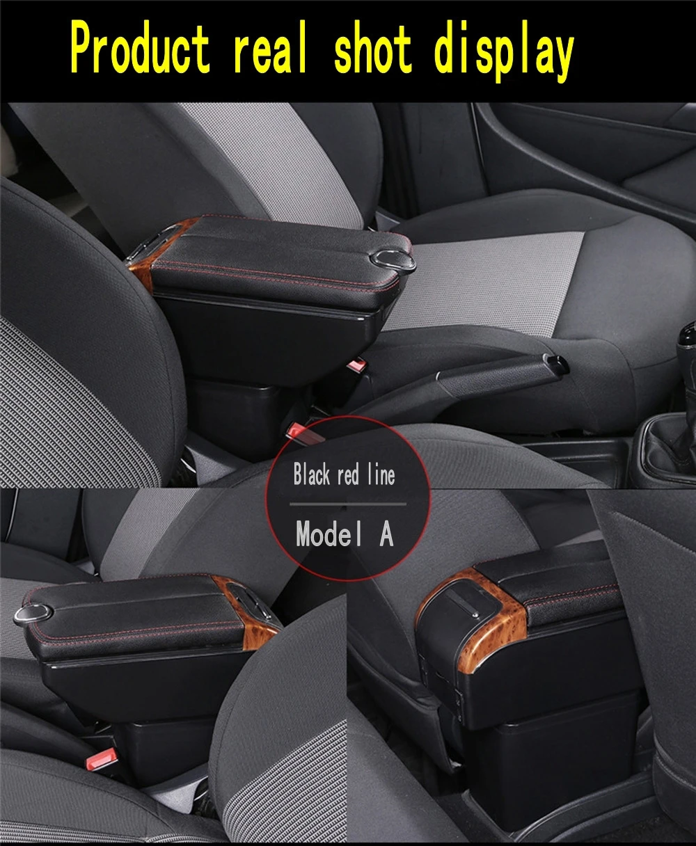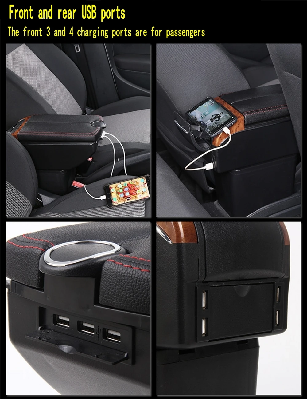 Model A : Peach wood grain + 7USB (front 3USB + rear 4USB) armrest box + base + Cable, cigarette lighter usb adapter, screw pack. Model B : plating + 7USB (front 3USB + rear 4USB) armrest box + base + Cable, cigarette lighter usb adapter, screw pack. Armrest base : Note that this option has no armrest box, it only has 1 black base.