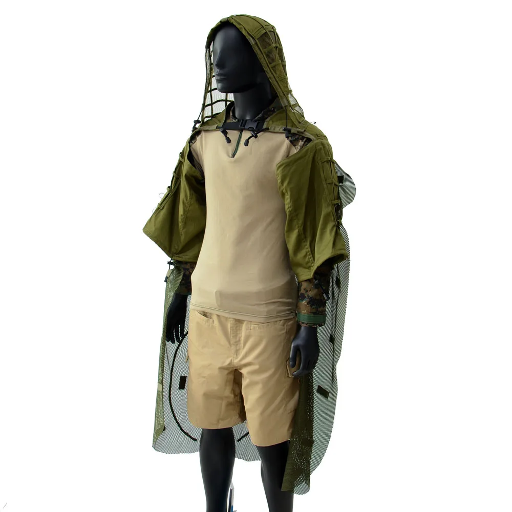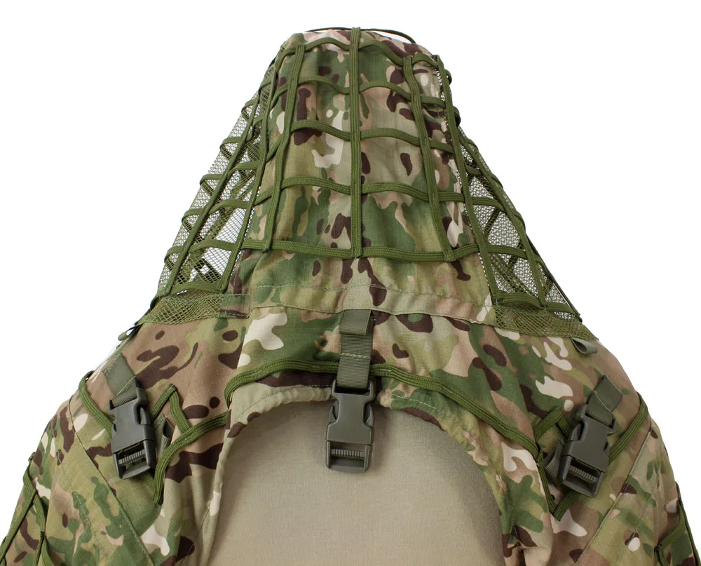 Основа для костюма снайпера Tog Ghillie с накидкой Ghillie, капюшон снайпера Ghillie Viper & накидка Ghillie Базовые характеристики Ghillie- Материал: хлопок Капюшон ghillie регулируется с помощью резинок и ремешков. Регулируемый Натяжной ремень для груди По всему капюшону, на спинке и рукавах расположены квадратные планки-ячейки для нанесения маскировочных элементов. На капюшоне viper сзади 3 пластиковые пряжки для удержания накидки сзади Многоцелевая драпировка спины обеспечивает вариант модульной скрывающей одежды. Драпировка также может быть использована как автономная Маскировочная Обложка; Идеальное пособие для поспешной маскировки снаряжения, или для увеличения набора team hide kit. Особенности накидки Ghillie- Материал: сетчатый нейлон Многоцелевая накидка ghillie обеспечивает вариант модульной скрывающей одежды. Накидка ghillie также может быть использована как автономная Маскировочная Обложка; Идеальное пособие для поспешной маскировки снаряжения, или для увеличения набора team hide kit. Накидка изготовлена из нейлоновой сетки, с 3 квадратными ремнями и Нейлоновыми петлями, пришитыми, для переноски маскировок, таких как жилли, нитки, растительность и так далее Накидку можно прикрепить к нашему основанию sniper tog ghillie через 3 пряжки и 4 шнурка Легкий, дышащий, складной Посылка входит: 1 основа для костюма Ghillie + 1 накидка Ghillie