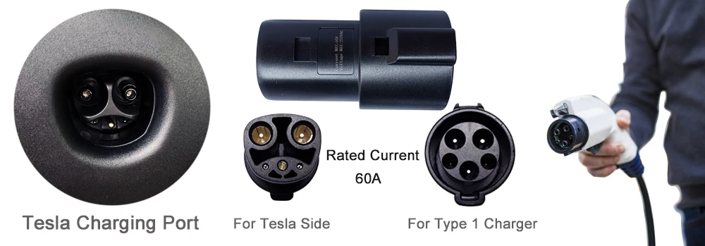 EVSE Electric Car Vehicle Charging Connector Male to Female SAE J1772EV Charger Type 1To TeslaAdapter