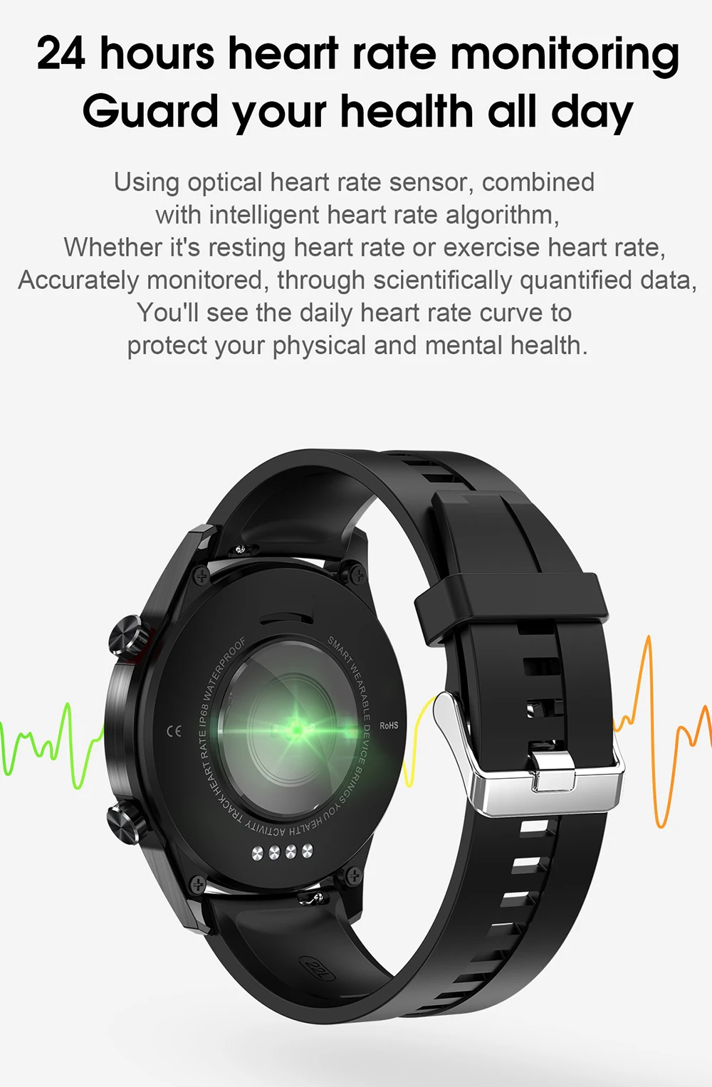 Используя оптический датчик частоты сердечных сокращений, в сочетании с интеллектуальным алгоритмом сердечного ритма, будь то частота сердечных сокращений в состоянии покоя или пульса, точно контролируется, с помощью научно-количественных данных вы видите, что повседневная кривая сердечного ритма защищает ваше физическое и умственное здоровье.