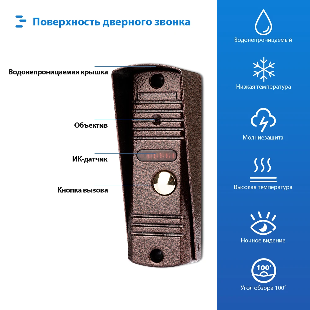 🌞Дверной звонок изготовлен из специальных материалов. ☔Он является водонепроницаемым IP65 и поддерживает дневное и ночное видение. 🌨Дверной Звонок может работать нормально, когда идет сильный снег или высокая температура. ☀Если посетители звонят в дверной звонок, вы можете разблокировать дверь в вашем доме, без необходимости идти во двор, чтобы открыть дверь.