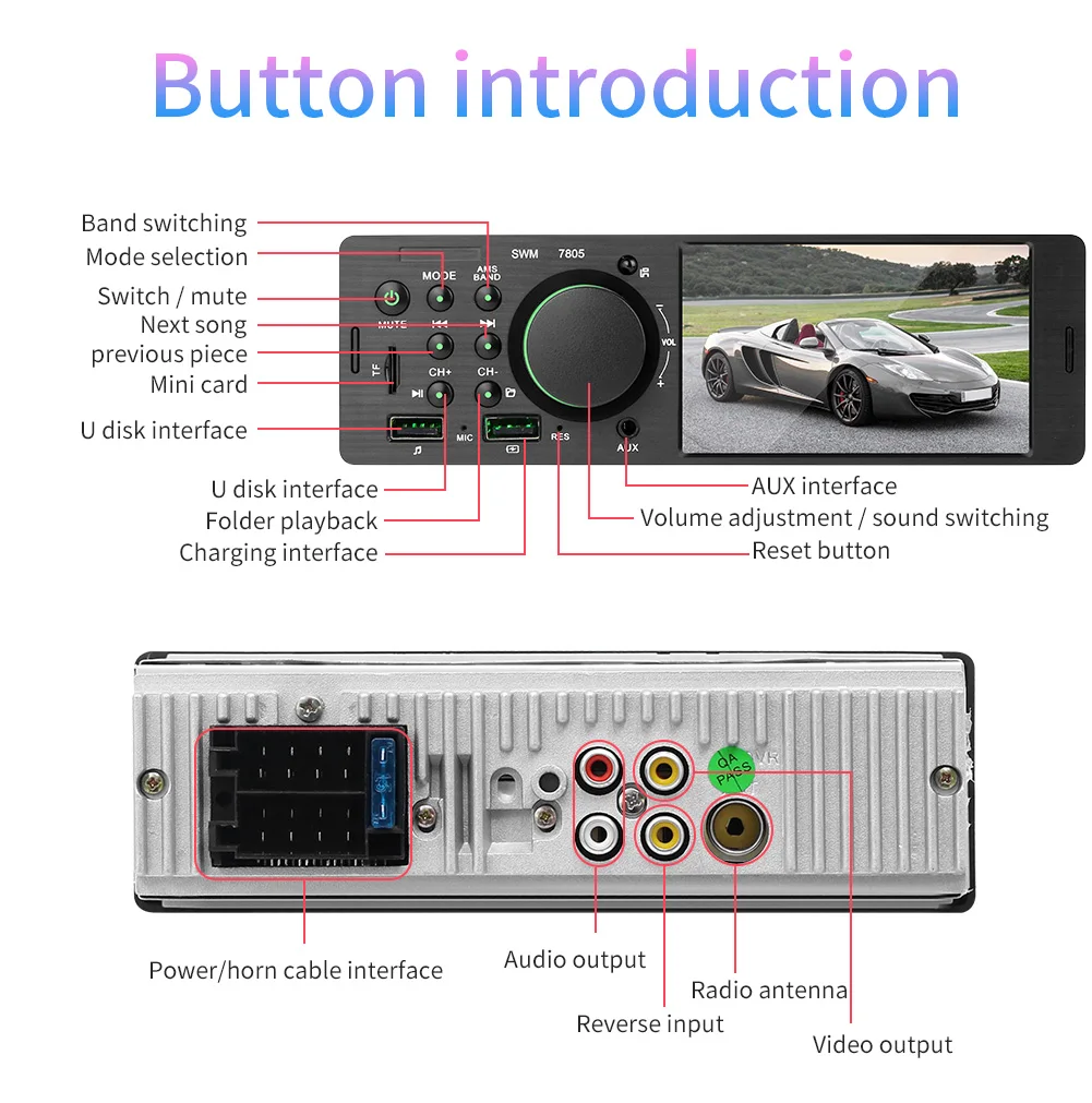 4,1 дюймов 12V стерео MP5 видео плеер ЖК-дисплей Экран Авто Радио стерео 1 Din Bluetooth USB FM радио AUX