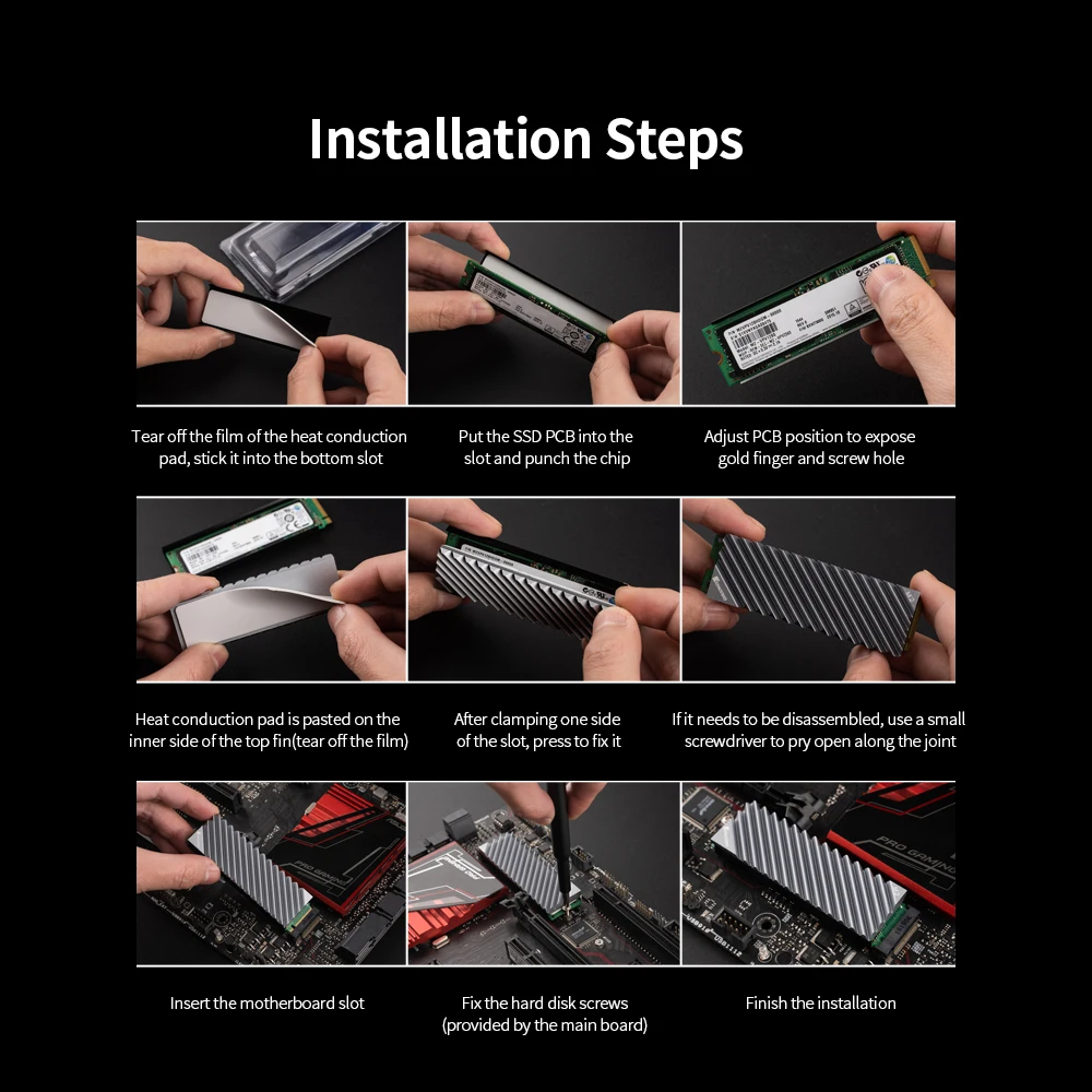 Оснащен высококачественными теплопроводящими силиконовыми прокладками, быстрой скоростью нагрева, избегайте перегрева SSD и замедления.