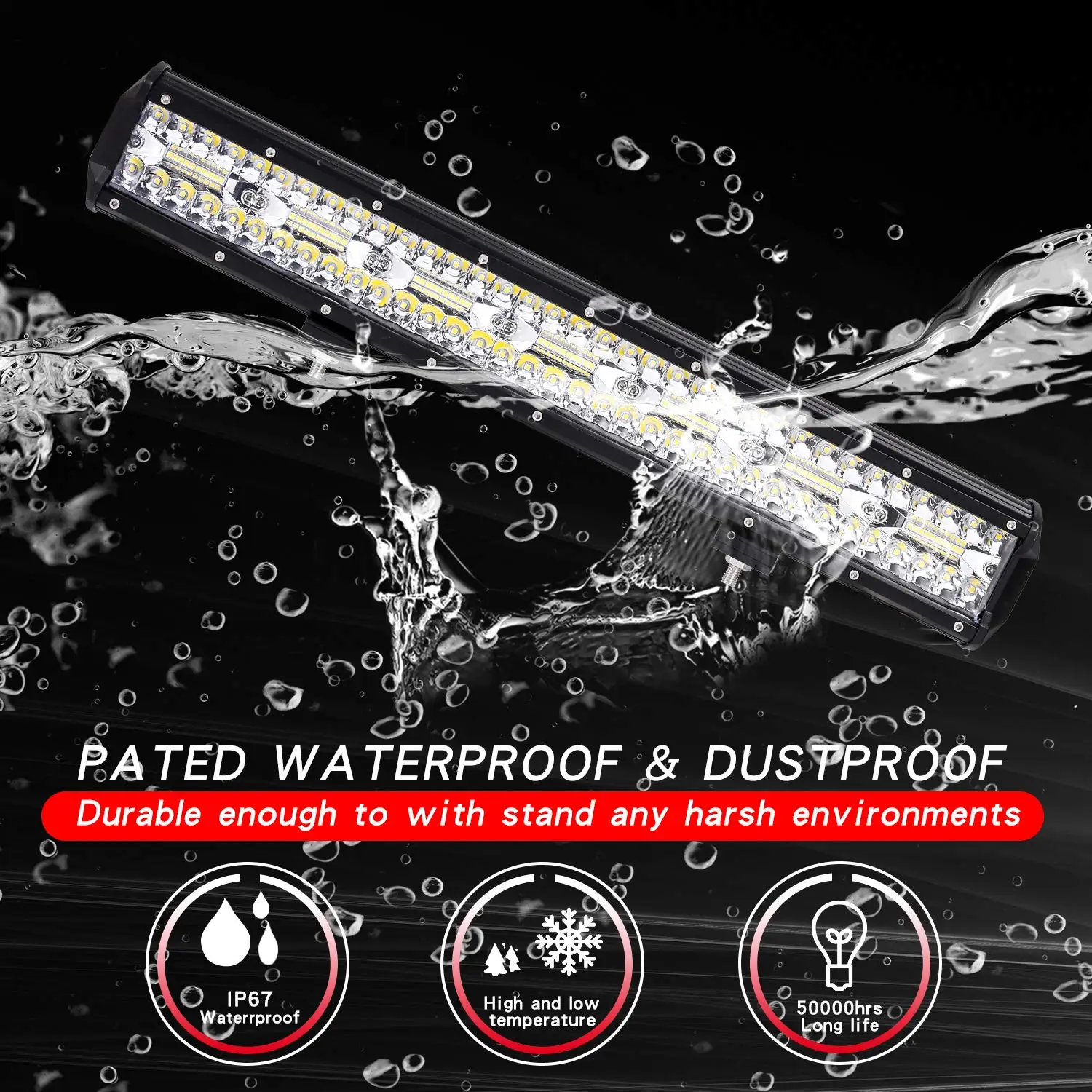 Название продукта: 20 дюймов 420 Вт трехрядный светодиодный светильник бар Ламповые бусины: Epistar Ламповые бусины, 3 Вт/шт; Тип светильника: точечный светильник Цветовая температура: 6000K; Яркость: 42000лм; Мощность: 420 Вт; Количество чипов: 140 шт. * 3 Вт Мощный epistar COB светодиодный Материал: корпус из авиационного алюминиевого сплава, зеркало из поликарбоната, кронштейн из нержавеющей стали 304; Цвет: черный; Срок службы: >50000 ч; Напряжение: 10 ~ 48 В, постоянный ток; Размер: 54*12*12 см Вес: 1500 г; Рабочая температура: низкая температура-40 ℃ ~ Высокая температура 85 ℃; Принцип рассеивания тепла: авиационный алюминиевый сплав тип забора тепловыделение Водонепроницаемость: IP67;