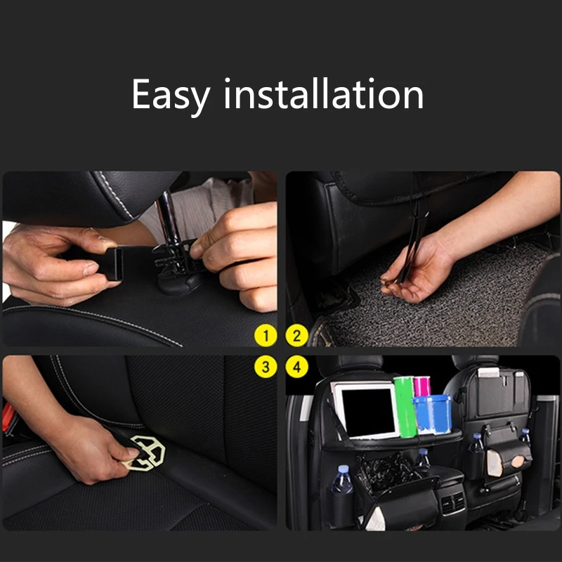Органайзер на заднюю часть автомобиля был отделан высококачественными материалами из искусственной кожи с отличной водонепроницаемостью и хорошей долговечностью. Идеально защищает ваши сиденья от царапин, потертостей, грязи и износа. И водонепроницаемый, легко моется.<br/>