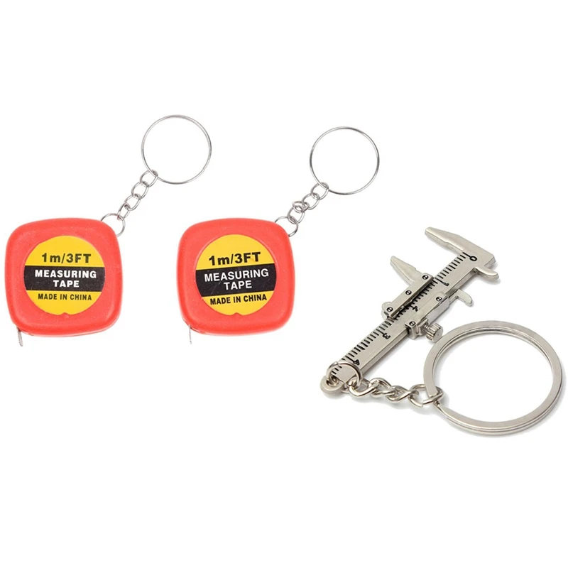 2 шт. красный чехол 1 метр 3 фута рулетка с кольцом для ключей и 1x штангенциркуль инструмент подвеска слайдер брелок 10 см