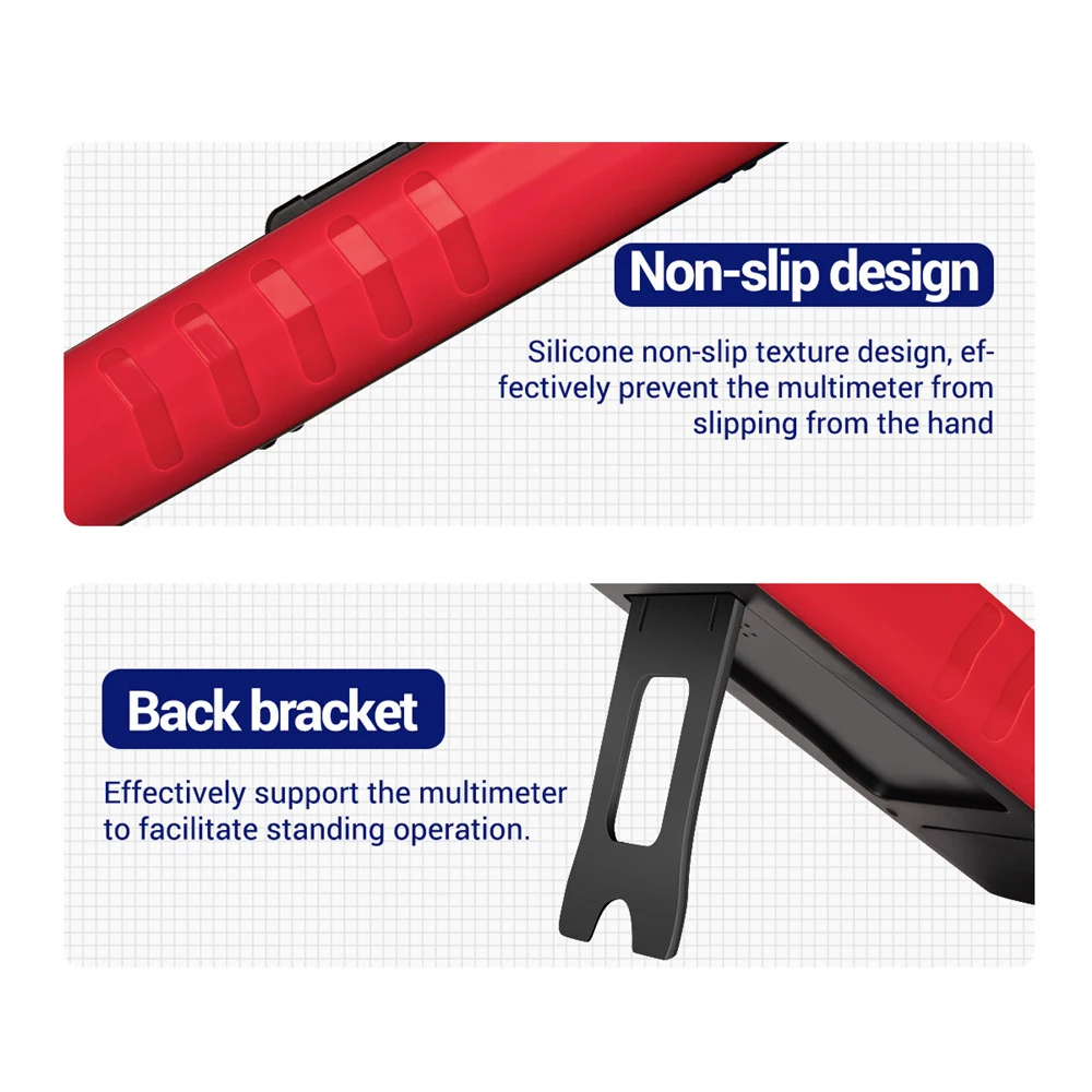 -Нескользящая конструкция: ПВХ силиконовая Нескользящая Текстура. Пазы подходят для вашей руки, эффективно предотвращая скольжение мультиметра. Устойчивый к падению и износостойкий, более прочный.