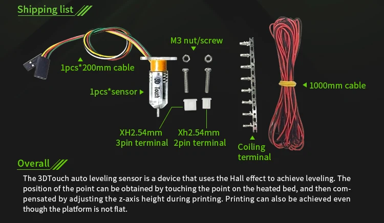 Датчик автоматического выравнивания 3dtouch-это устройство, которое использует eddect для выравнивания. Положение точки можно получить, коснувшись точки на нагретой кровати, а затем компенсируя, регулируя высоту Z-AXIS во время печати, печать также может быть достигнута, даже если форма не плоская.