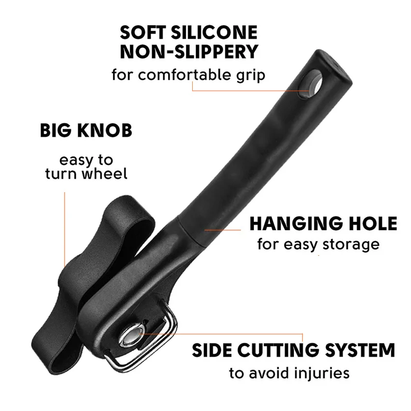 Удобно для подвешивания или хранения с отверстием на ручке. Легко чистить: новый дизайн, нарезать крышку боком. Режущее лезвие не прикасается к пище, а крышку можно положить обратно в емкость, не попав в еду, что обеспечивает чистоту пищи. При очистке открывалка вам просто нужно сделать краску под проточной водой. Высококачественный Материал: Изготовлен из высококачественного пищевого безопасного материала из нержавеющей стали и полипропиленового пластика. Гарантируем, что он не будет ржаветь или сломаться в течение времени! Компактный и умный дизайн делает его идеальным подходящим для ваших кухонных ящиков и шкафа. Портативный и легкий светильник: подходящий размер позволяет легко носить с собой во время путешествия или кемпинга, он может открывать все виды круглых и овальных банок. Это также Легкий и простой в использовании: эргономичный дизайн, большая легкая поворотная ручка и хорошая удобная рукоятка делают открытые банки легкими, быстрыми и простыми. Гладкая и безопасная Кромка: Защитите и Обеспечьте безопасность Ваших Пальцев, гладкость и отсутствие острых краев, чтобы ваши пальцы были более безопасными. Не стесняйтесь и безопасно использовать самостоятельно и даже вашим детям!Как использовать: