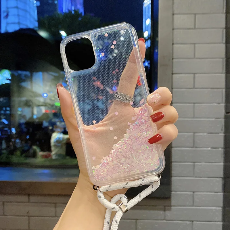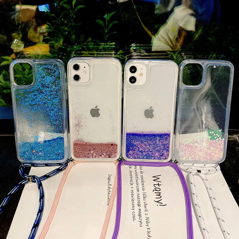 2. Зыбучий песок Блестящий ремешок шнур цепь телефон для Apple iPhone 11 Pro XS Max 6 7 8 plus XR X ожерелье ремешок чехол для телефона чехол для переноски