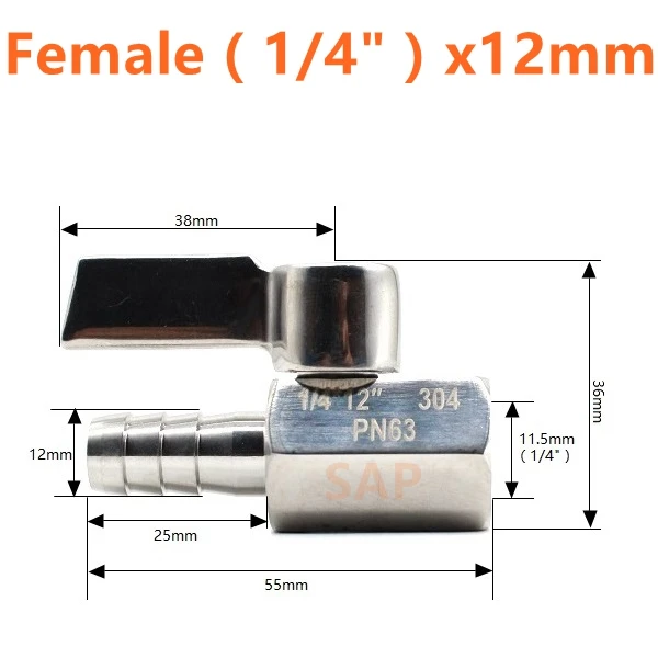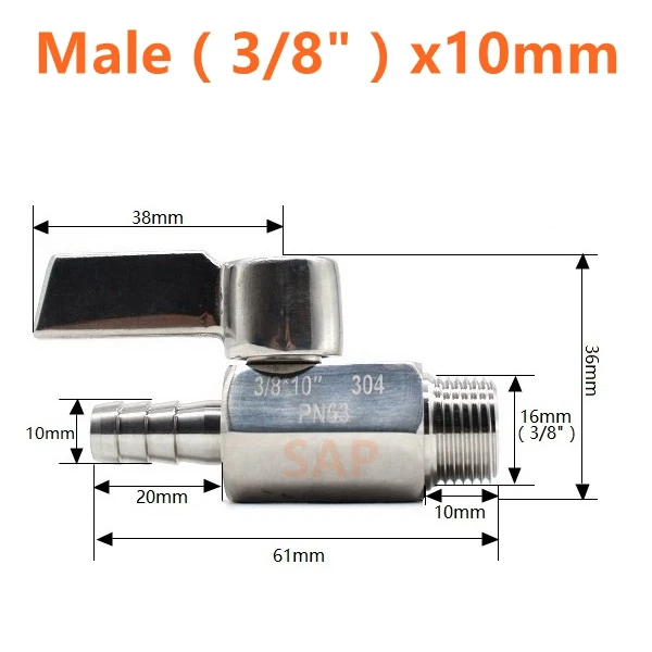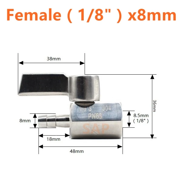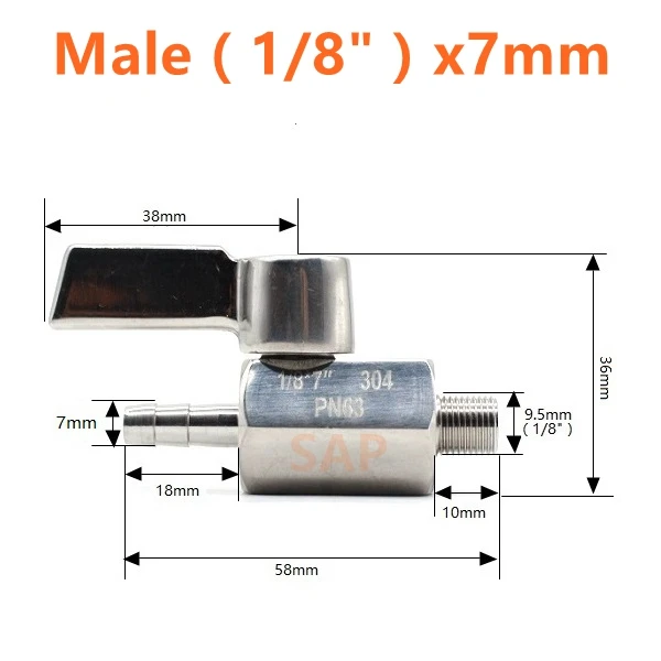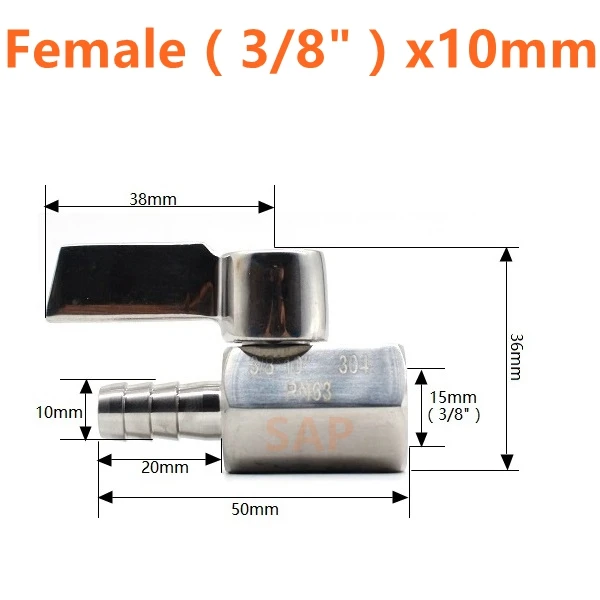 Бесплатная доставка, Мини шаровой кран из нержавеющей стали, ручка 304, адаптер для пагоды, «мама», «папа», 2-ходовой шаровой кран