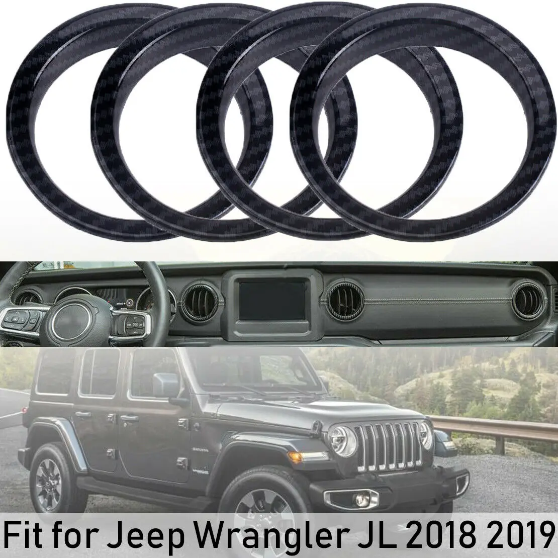 EIDRAN 4pcs Carbon Fiber Texture Dashboard Air Vent Outlet Cover Trim Ring Fit For Jeep Wrangler JL 2018 2019