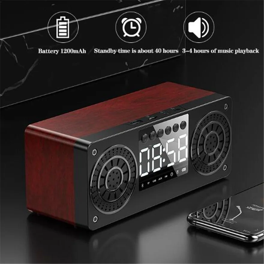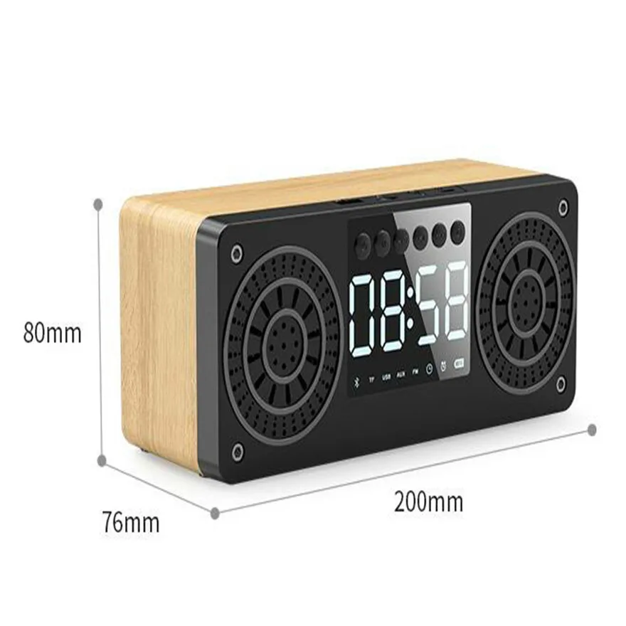 Деревянный Hifi будильник портативный динамик FM с TF/AUX/USB входом