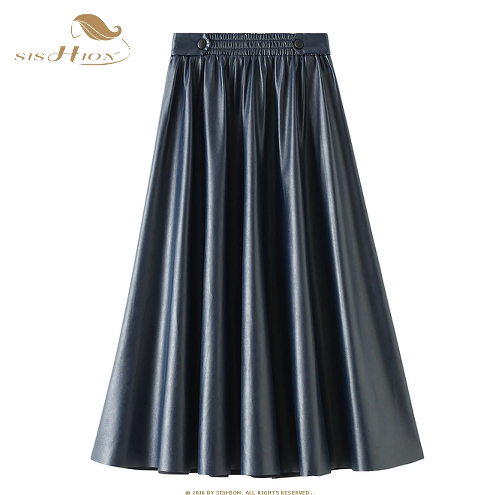 2020 осенне-зимняя юбка из искусственной кожи WF0170, винтажная однотонная женская Дамская длинная юбка черного цвета и цвета хаки, юбки с высокой талией