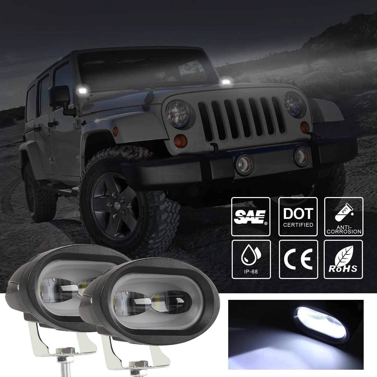 -Высокая производительность плотного водонепроницаемого, пылезащитного, quakeproof. -Защита от взрыва -Лучше всего использовать для внедорожного транспортного средства светильник, рабочий светильник бар