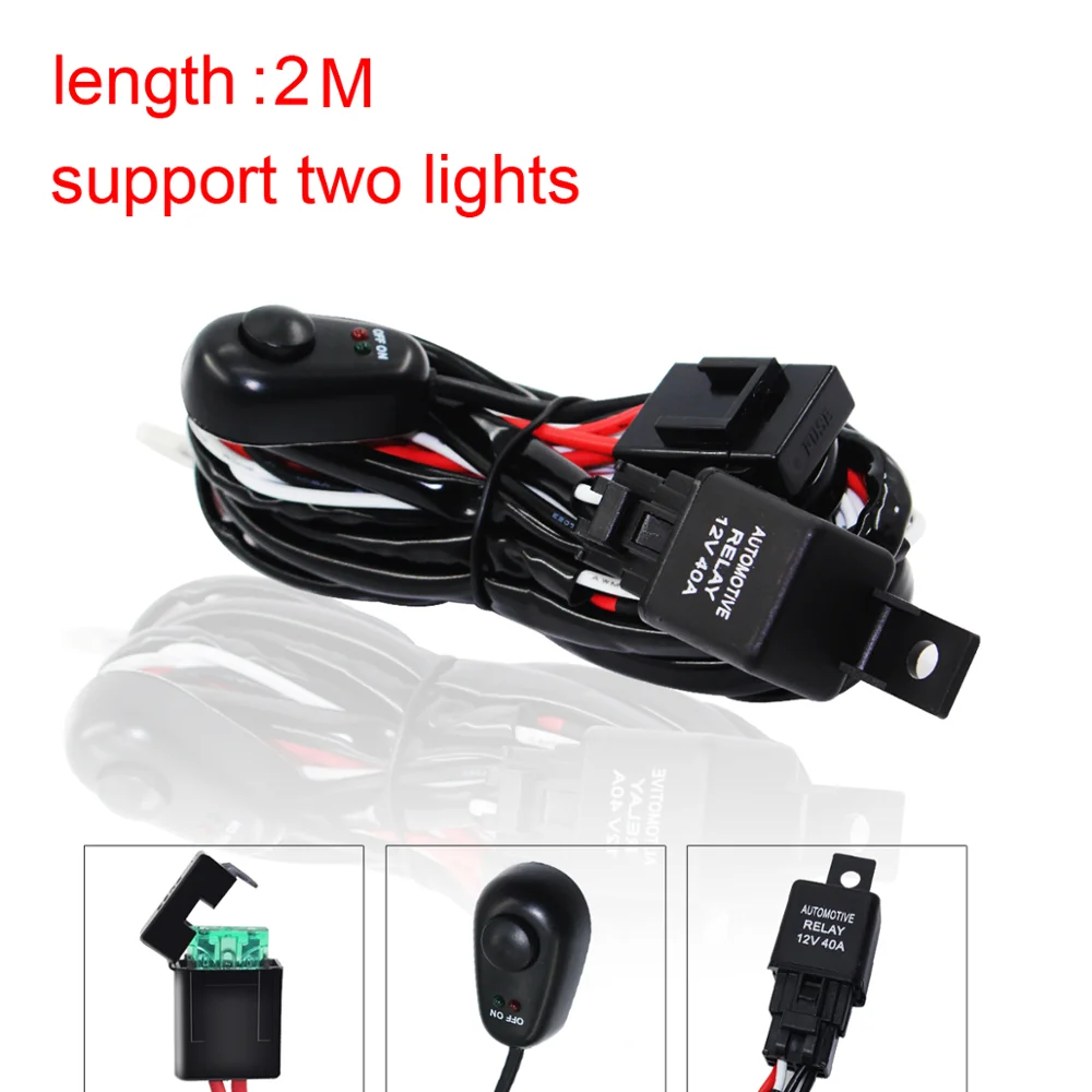 180 Вт 12 В внедорожный автомобильный светильник, высокомощный переключатель, проводка, группа, светодиодный светильник, один буксир, два жгута проводов Входной источник питания: 9-16 В (если аккумулятор вашего автомобиля-грузовик или другие модели-24 В, просто измените реле на 24 В). Ядро: 14AWG (2 квадратных) Срок службы светильника: 6000H Цветовая температура: 6000K Вес: 0,439 кг Описание товара: 1. Основной соединитель проводки 6,3 с обшитым кольцом. 2. Общая длина линии управления переключателем составляет 2 метра (переключатель поставляется с 1 метром, жгут проводов-2 метра), а длина реле на рабочий светильник-2 метра. Длина реле на батарею составляет 0,5 метра. 3. С реле и предохранителем высокого тока, безопасность гарантируется. 4. Клавишный переключатель (с клеем) может быть установлен в любой части, простой и удобный. 5. Непосредственно Подключите аккумулятор, чтобы получить электричество, чтобы убедиться, что линия электропитания оригинального автомобиля не повреждена.